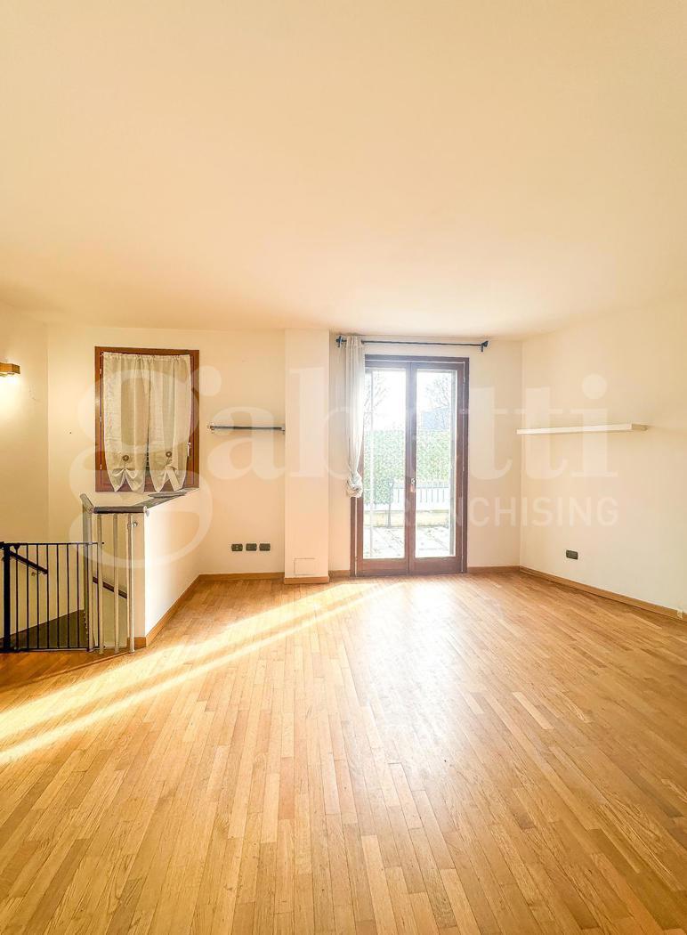 Al piano terra: soggiorno con cucina a vista, camera matrimoniale, bagno finestrato, doppia esposizione e giardino che circonda lintero piano.