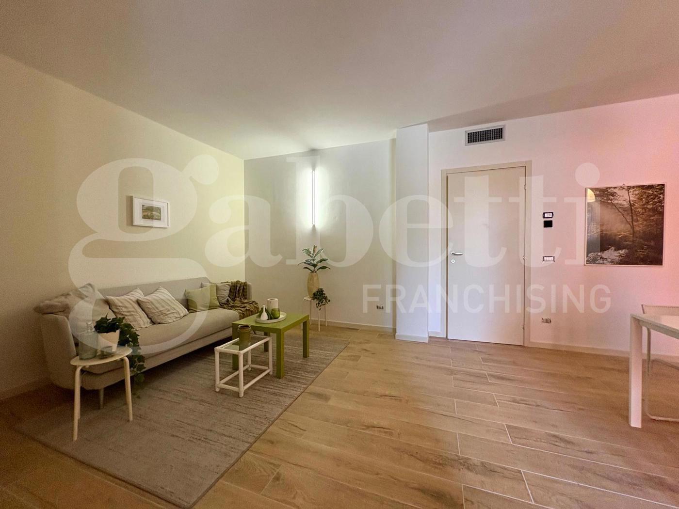 La soluzione caratterizzata da finiture moderne e di pregio, con una pavimentazione in gres effetto legno in tutti gli ambienti, infissi in PVC con doppio vetro e tapparelle motorizzate; l'appartamento dotato anche di un impianto di domotica per il controllo, anche da remoto, delle luci e della climatizzazione.