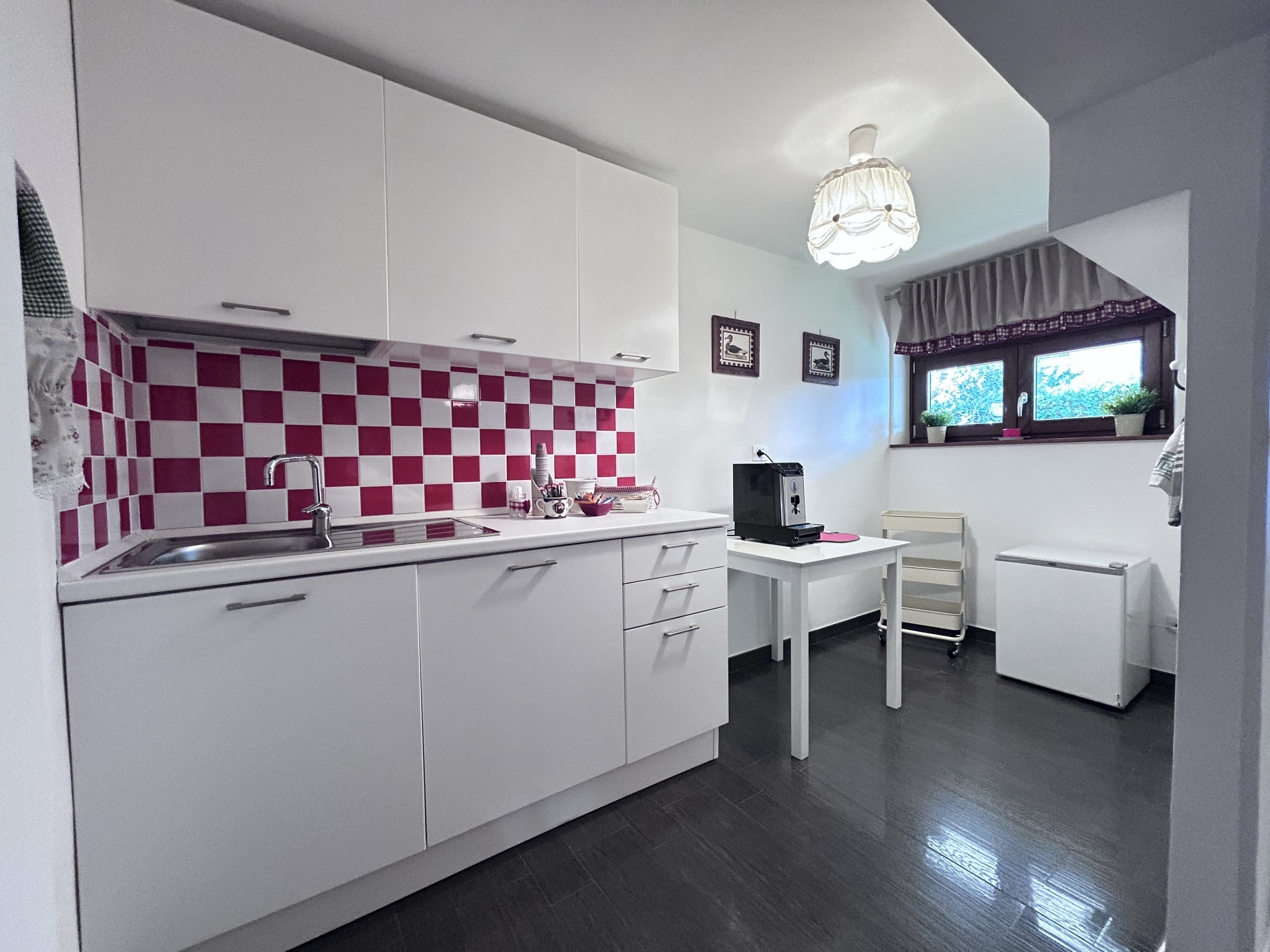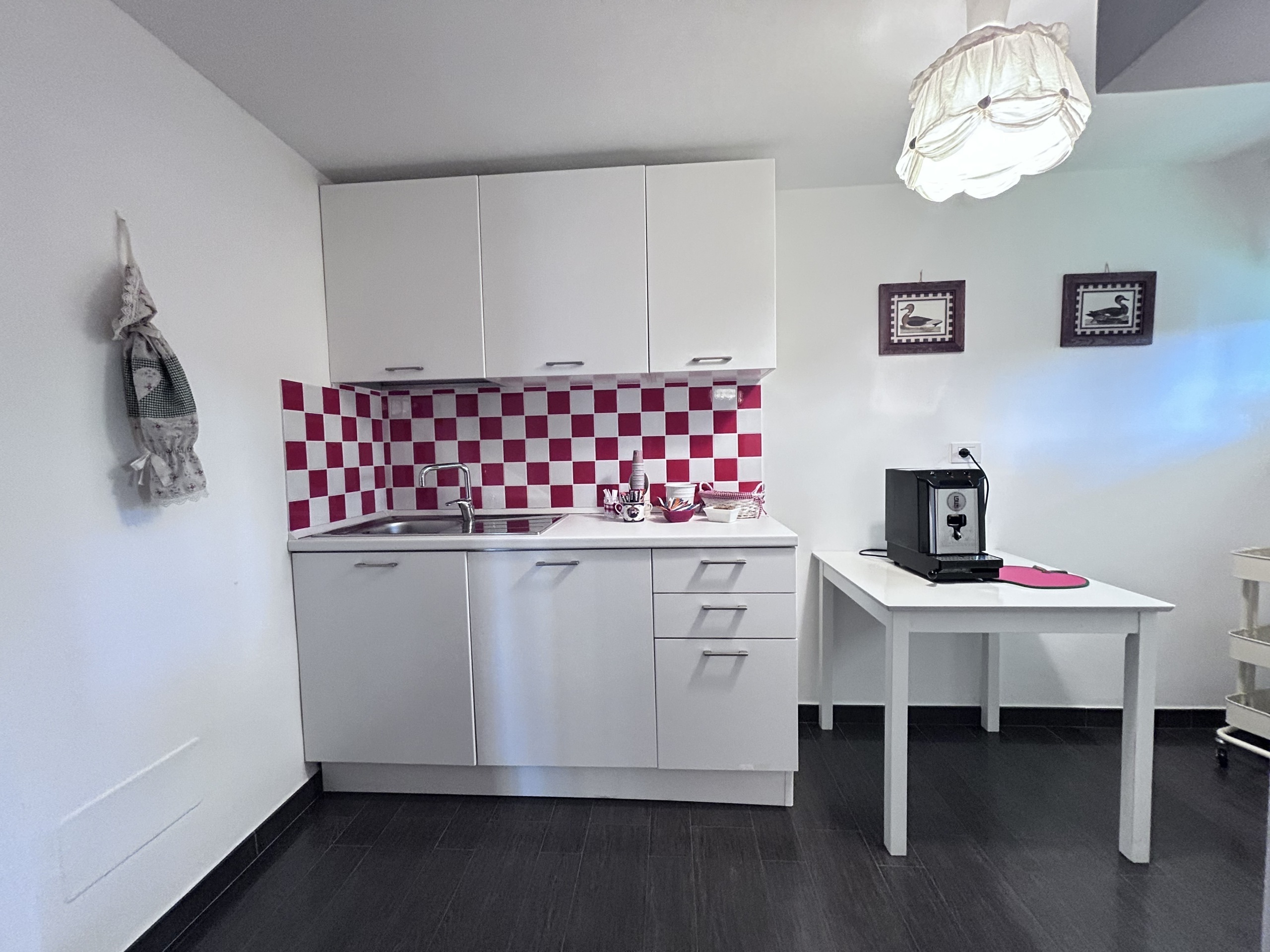 L' immobile di circa 70 mq e' composto da: ingresso, soggiorno, cucinotto, disimpegno, camera matrimoniale, studio e servizio con doccia.