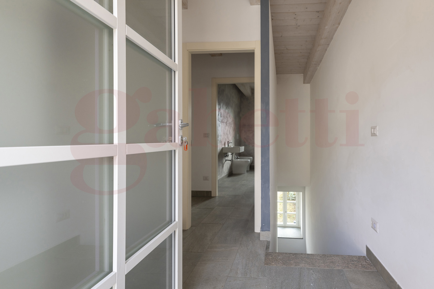 In contesto collinare tranquillo e riservato, circondato dal verde ma comodo alla viabilit, appartamento di recente realizzazione composto da tre locali e disposto su due livelli per una superficie totale di circa 135 mq.. Labitazione fa parte del complesso residenziale denominato Condominio Poderi Favetti, questultimo oggetto di recente riqualificazione per mezzo di una ristrutturazione generale dei suoi edifici (2018). Lappartamento proposto adotta soluzioni moderne, quali il riscaldamento a pavimento, gli infissi di nuovissima generazione e la coibentazione esterna per mezzo di cappotto termico che ne garantiscono e aumentano lefficienza energetica cos da classificarlo in classe A2. La soluzione si compone al piano terra di un ampio living con cucina a vista e affaccio diretto al giardino pertinenziale ad uso esclusivo, servizi e un locale ad uso cantina; al piano superiore due camere e servizi.