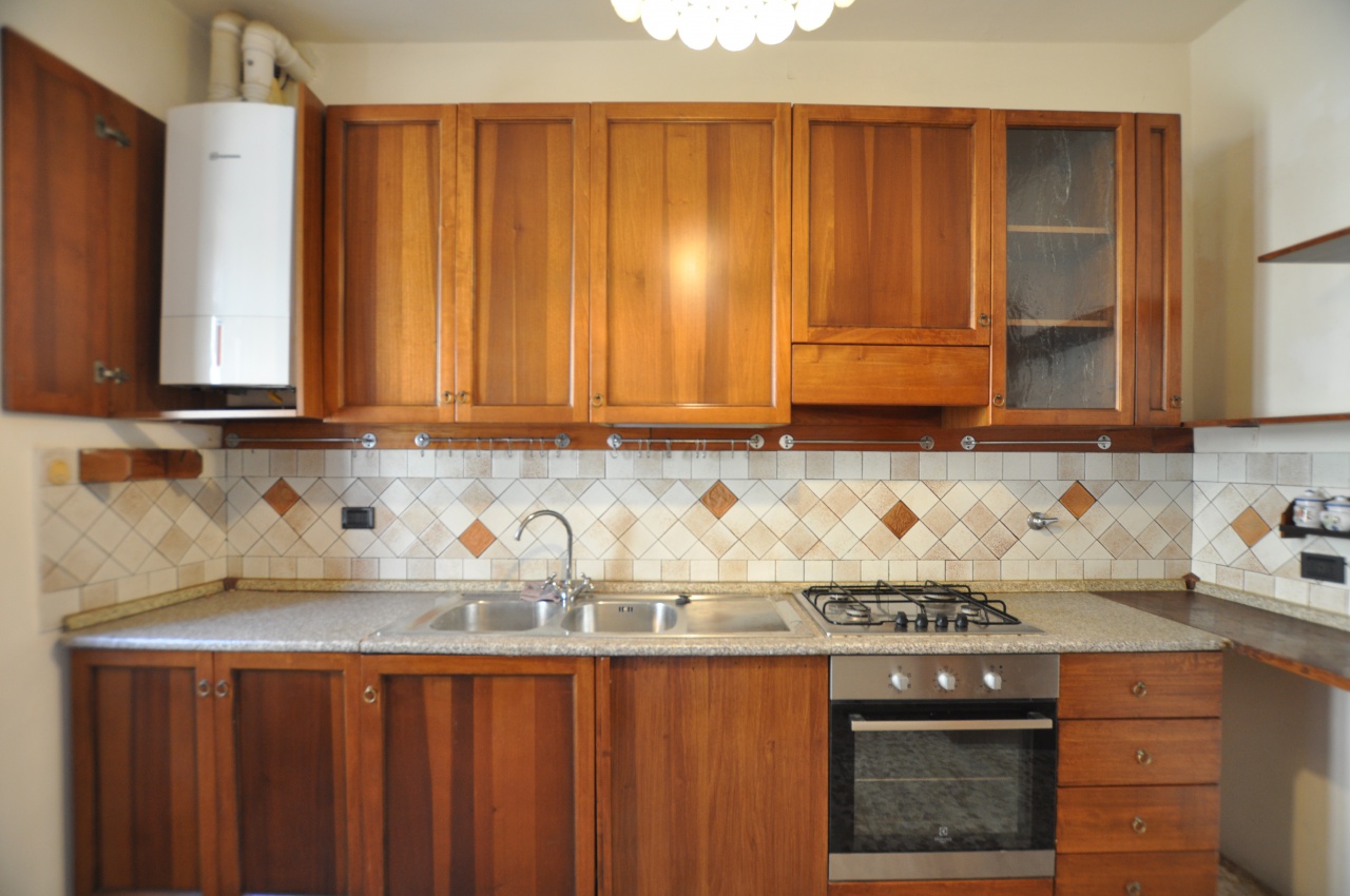 In zona ben collegata vicina al centro, vendesi appartamento di tre vani per 50 metri quadri al piano rialzato, con garage e piccola resede privata.