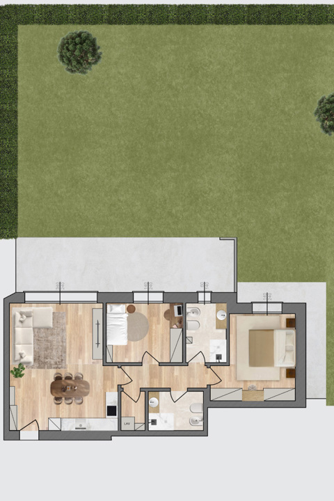 SI PRENOTANO APPARTAMENTI IN CLASSE A3 Si prenotano appartamenti di nuova costruzione in classe A3, pronti per fine 2027. A INZAGO a due passi dal Naviglio della Martesana e da tutti i principali servizi, proponiamo spazioso e luminoso appartamento tre locali di 90mq posto al piano terra di due. L'immobile si compone di soggiorno con cucina a vista, due ampie camere da letto, doppi servizi e un spazioso giardino di 251mq.