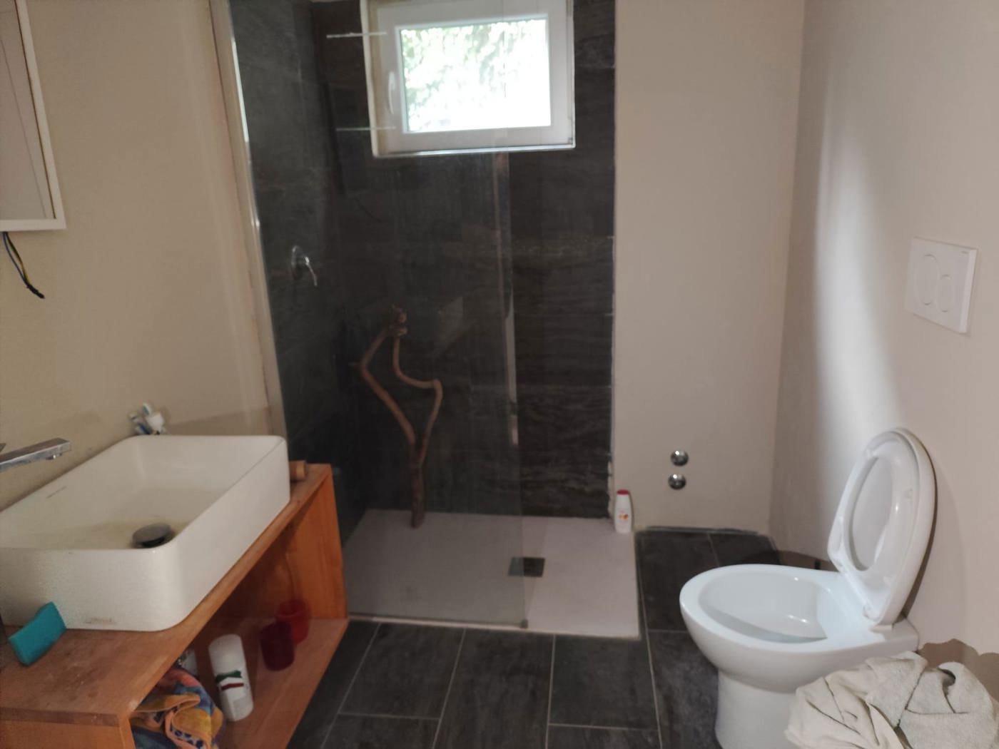 La parte abitativa quasi completamente ristrutturata, la parte sottostante dispone di serramenti nuovi in PVC con doppio vetro che necessita di ristrutturazione.