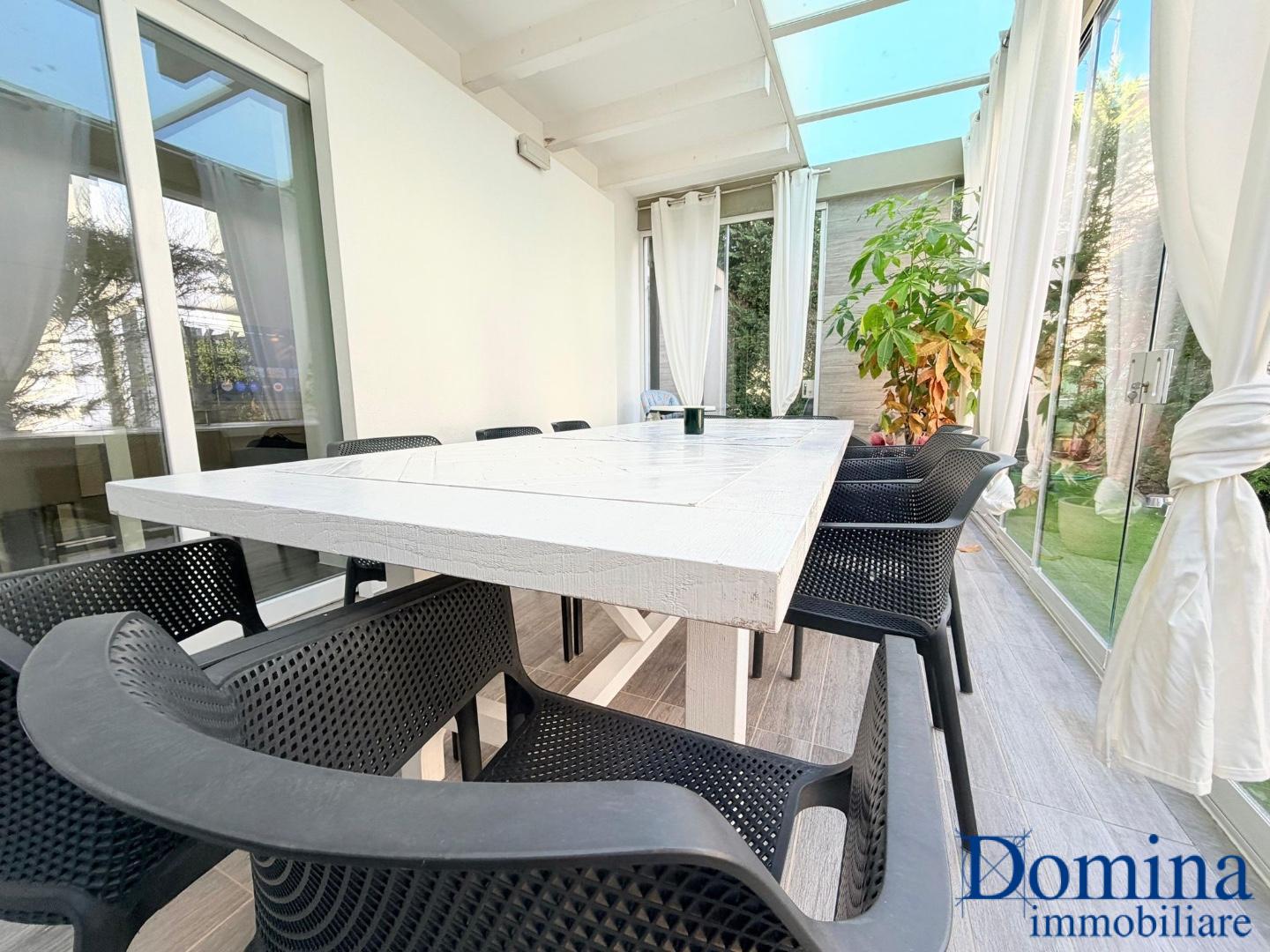 Lingresso introduce in un ampio soggiorno con zona pranzo, luminoso e ben proporzionato, dove la grande portafinestra permette di accedere a una splendida veranda coperta, ideale per pranzare allaperto o rilassarsi durante le giornate estive.