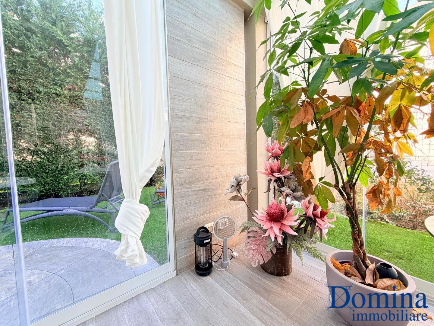 La zona notte è composta da una camera matrimoniale con accesso diretto a un grazioso giardinetto privato, da una seconda camera doppia e da un bagno finestrato con doccia, curato nei minimi dettagli e rifinito con materiali di ottima qualità. Allesterno si estende un giardino esclusivo che circonda labitazione su due lati, arricchito da spazi verdi ben curati e da zone coperte dove poter trascorrere piacevoli momenti allaperto.