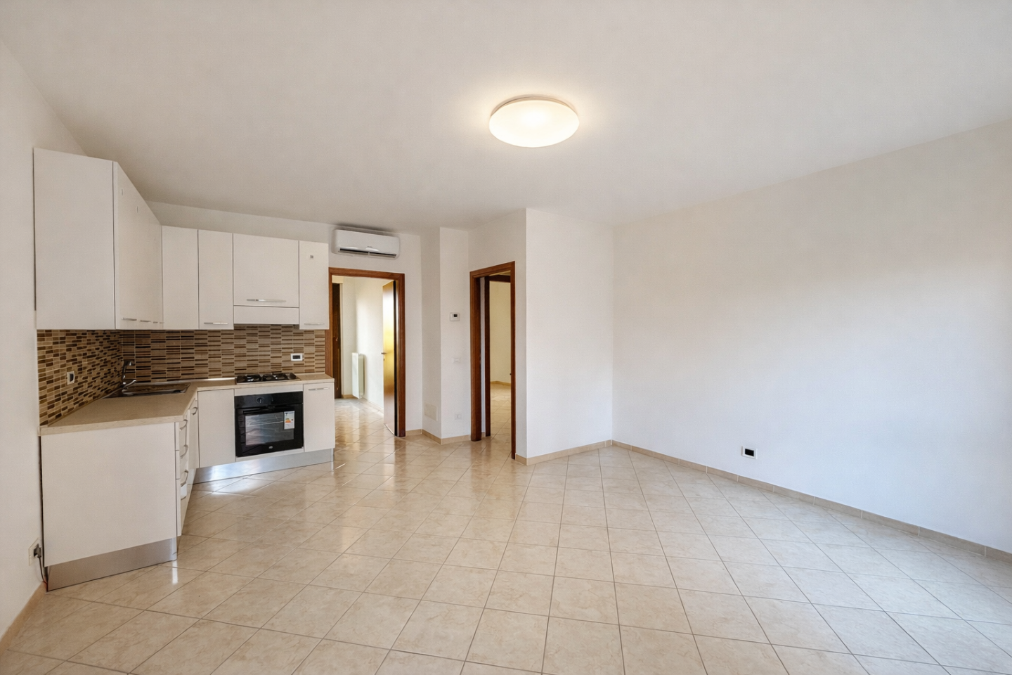 Composto da cucina-soggiorno con accesso dal resede dingresso, camera matrimoniale e camera media, entrambe con affaccio sul giardino sul retro, oltre a bagno con doccia e aspirazione.