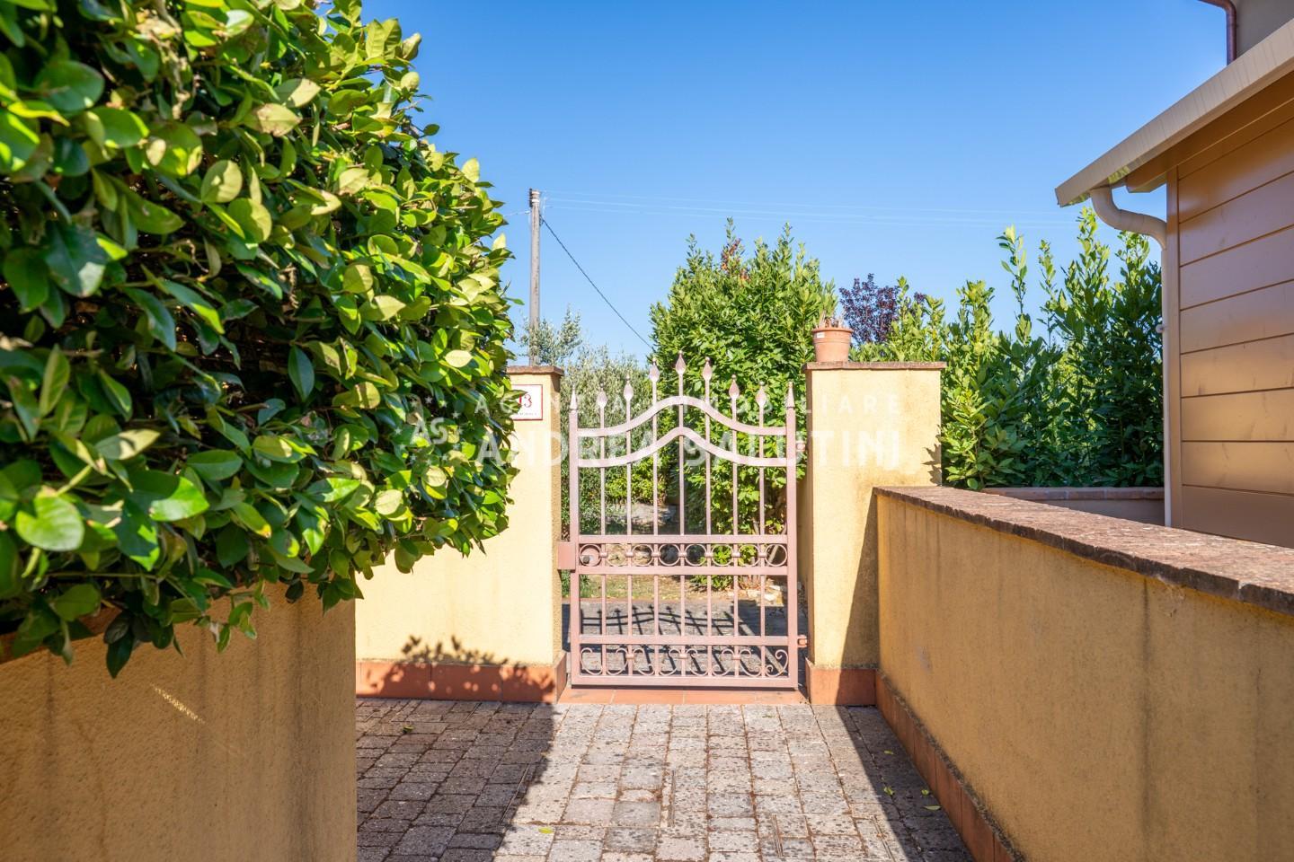 Completa la proprietà ampio giardino su tre lati di circa 200 m2 e un ampio loggiato sulla zona giorno dove poter allestire una zona living riparata.