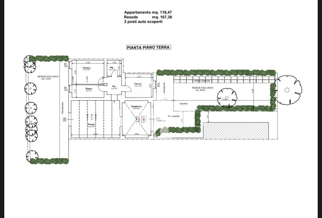 L'appartamento è cosi composto: ampia zona giorno, cucina abitabile con accesso al giardino di proprietà esclusiva, due camere da letto di cui una matrimoniale e l'altra singola, bagno finestrato e ripostiglio.