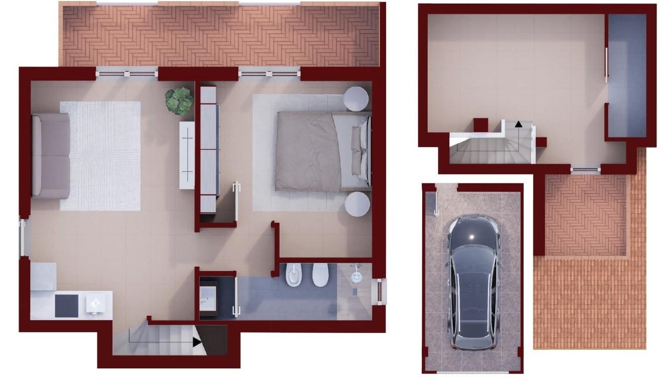 Al secondo piano mansardato troviamo ampio vano con balcone e vano con predisposizione per una lavanderia.