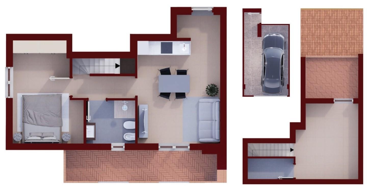 Al secondo piano mansardato troviamo ampio vano con balcone e vano con predisposizione per una lavanderia.