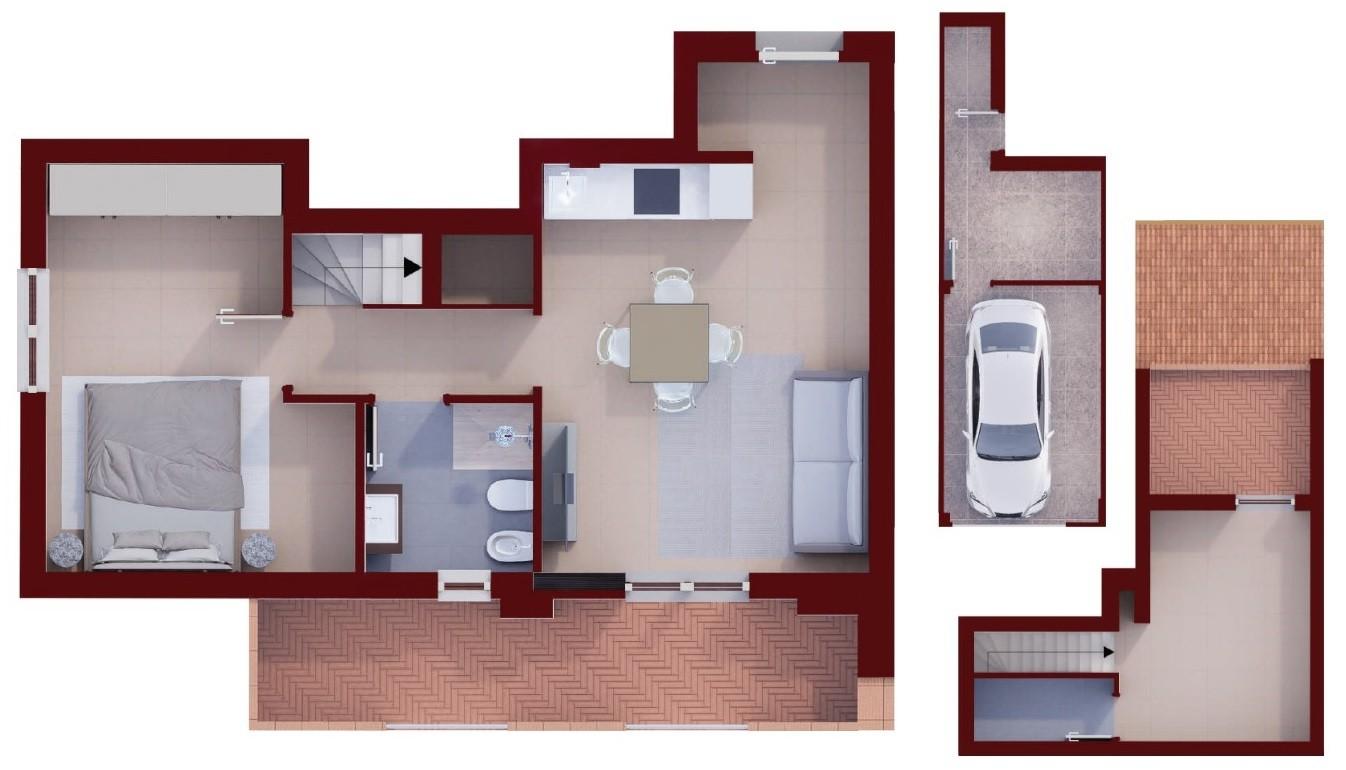 Al secondo piano mansardato troviamo ampio vano con balcone e vano con predisposizione per una lavanderia.