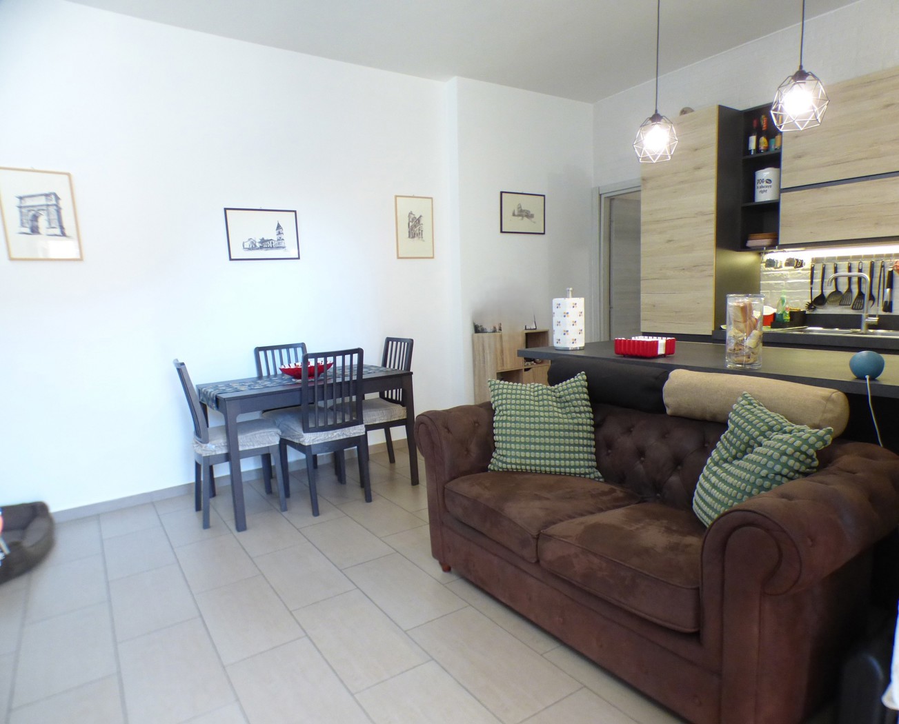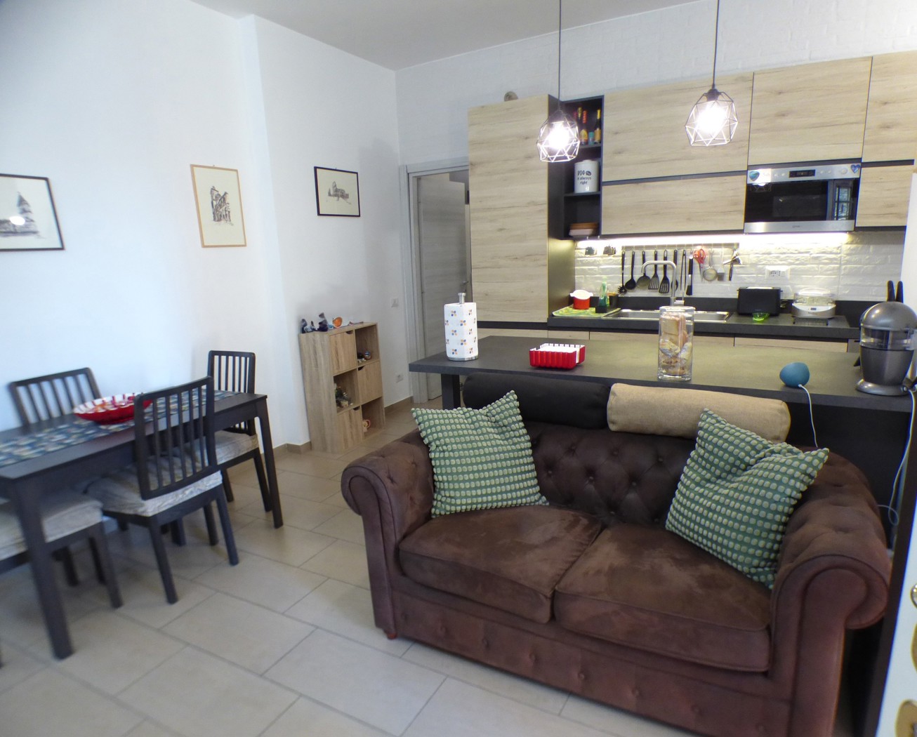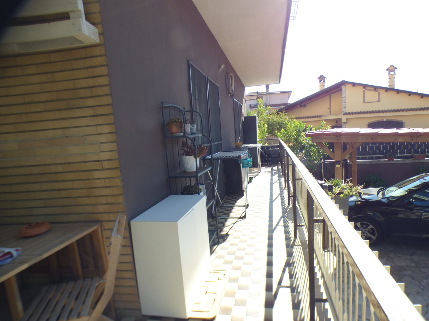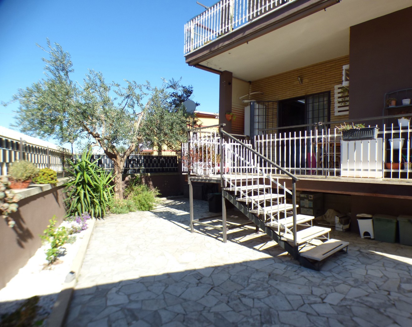 Composizione: Soggiorno con cucina a vista, una camera da letto matrimoniale, una cameretta, servizio con doccia, balconata in parte terrazzata ed un ampio giardino pavimentato di 60 mq. L'immobile ristrutturato e dotato di riscaldamento autonomo.