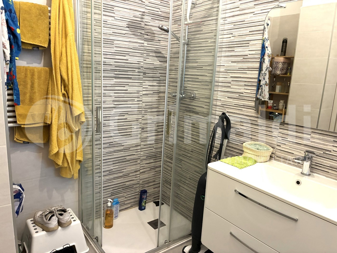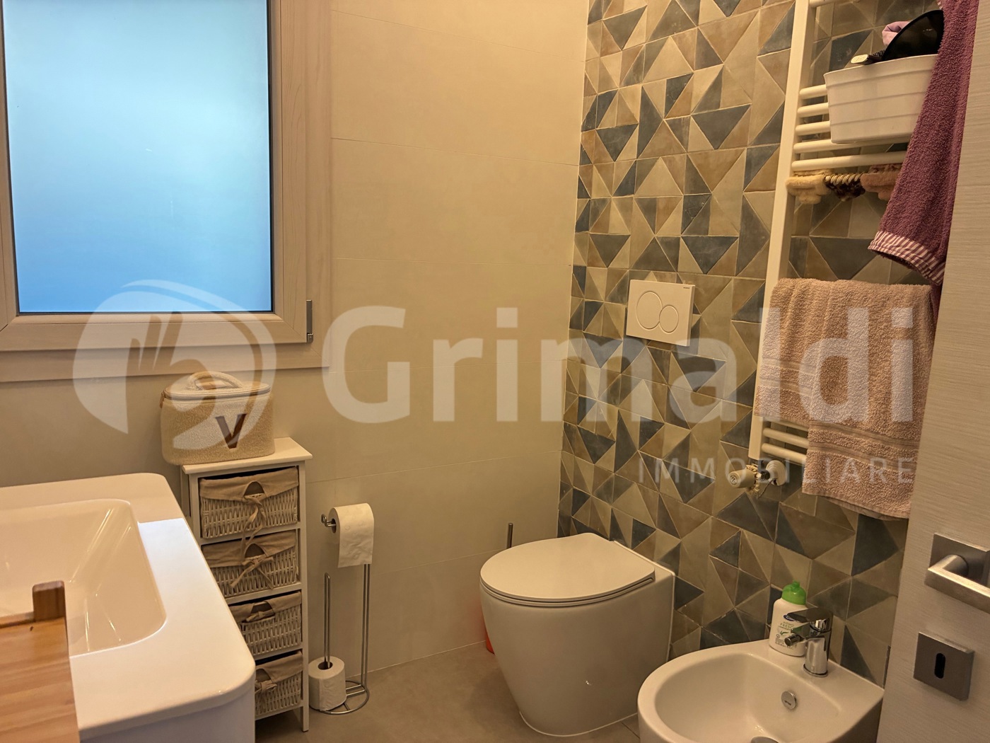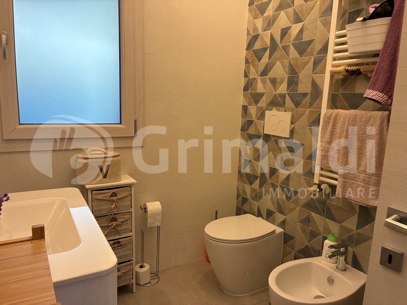 Ottimo stato interno! L'appartamento gode di rifinitura interne utili e funzionali come: porta d'ingresso blindata, videocitofono, allarme, infissi in doppio vetro/pvc con apertura a vasistas, sistema di areazione per ricircolo d'aria negli ambienti, ventilconvettore per aria calda e fredda, e pannelli solari condominiali per consumo di riscaldamente e raffreddamento.