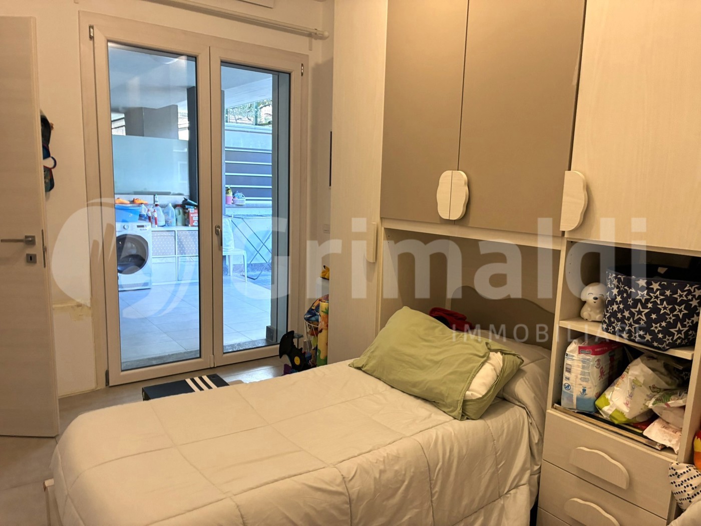 L'immobile posto al piano terra all'interno di uno stabile di recente costruzione ultimata nel 2023, priva di barriere architettoniche e dotata di ascensore, ed internamente risulta cos composto: salone con angolo cottura a vista, camera matrimoniale con servizio interno privato finestrato, comoda cameretta, bagno di servizio anch'esso finestrato, terrazzo dove c' la predisposizione per adibirlo a portico e giardino di 21mq mattonato.