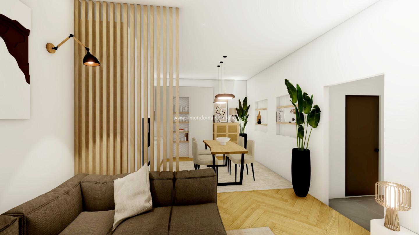 Gli interni sono ben distribuiti, con un ampio soggiorno, due camere da letto e un bagno.