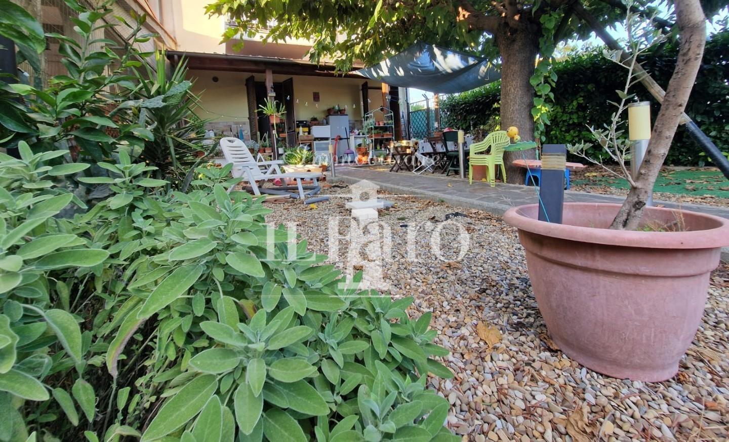 Sulla parte tergale è presente un giardino di circa 60 mq accessibile da entrambe le camere.