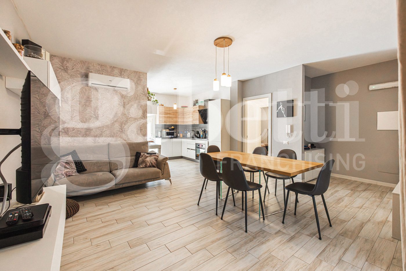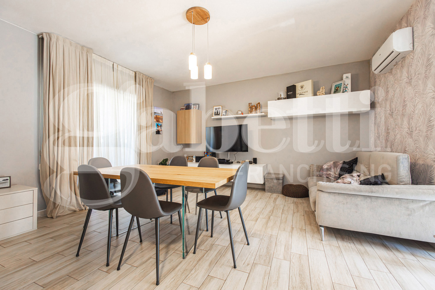 SINNAI - ZONA PINETA Gabetti propone in esclusiva rifinito trilocale di 77 mq sito al piano terra con ingresso indipendente, edificato nel 2021. L'immobile composto da ingresso indipendente, soggiorno e angolo cottura a vista con accesso a una veranda frontale e all'ampio cortile carrabile di 60 mq di propriet esclusiva; disimpegno, bagno con doccia, camera matrimoniale e camera singola con balcone privato.