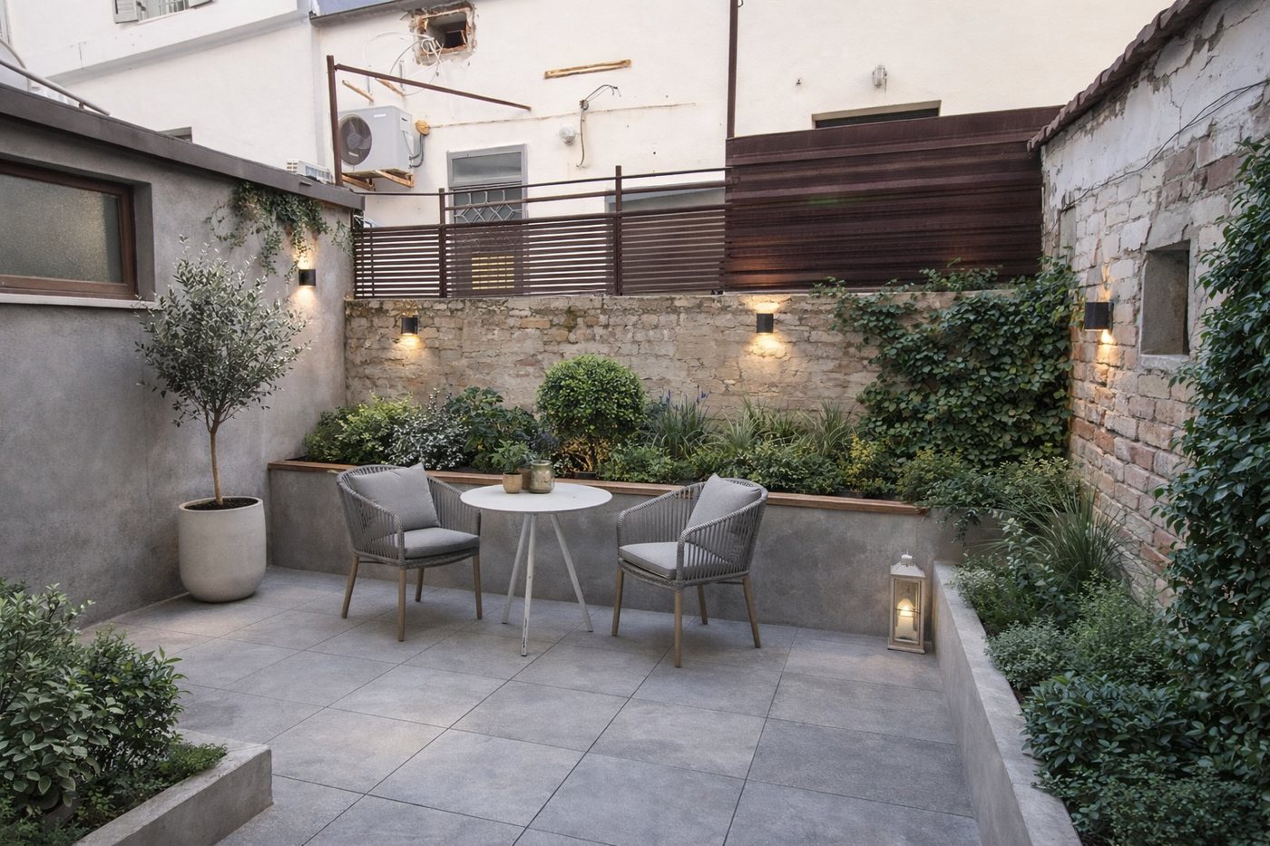 Completa la propriet un giardino privato di circa 13 mq situato sul retro del cortile, ideale per chi desidera uno spazio esterno riservato.