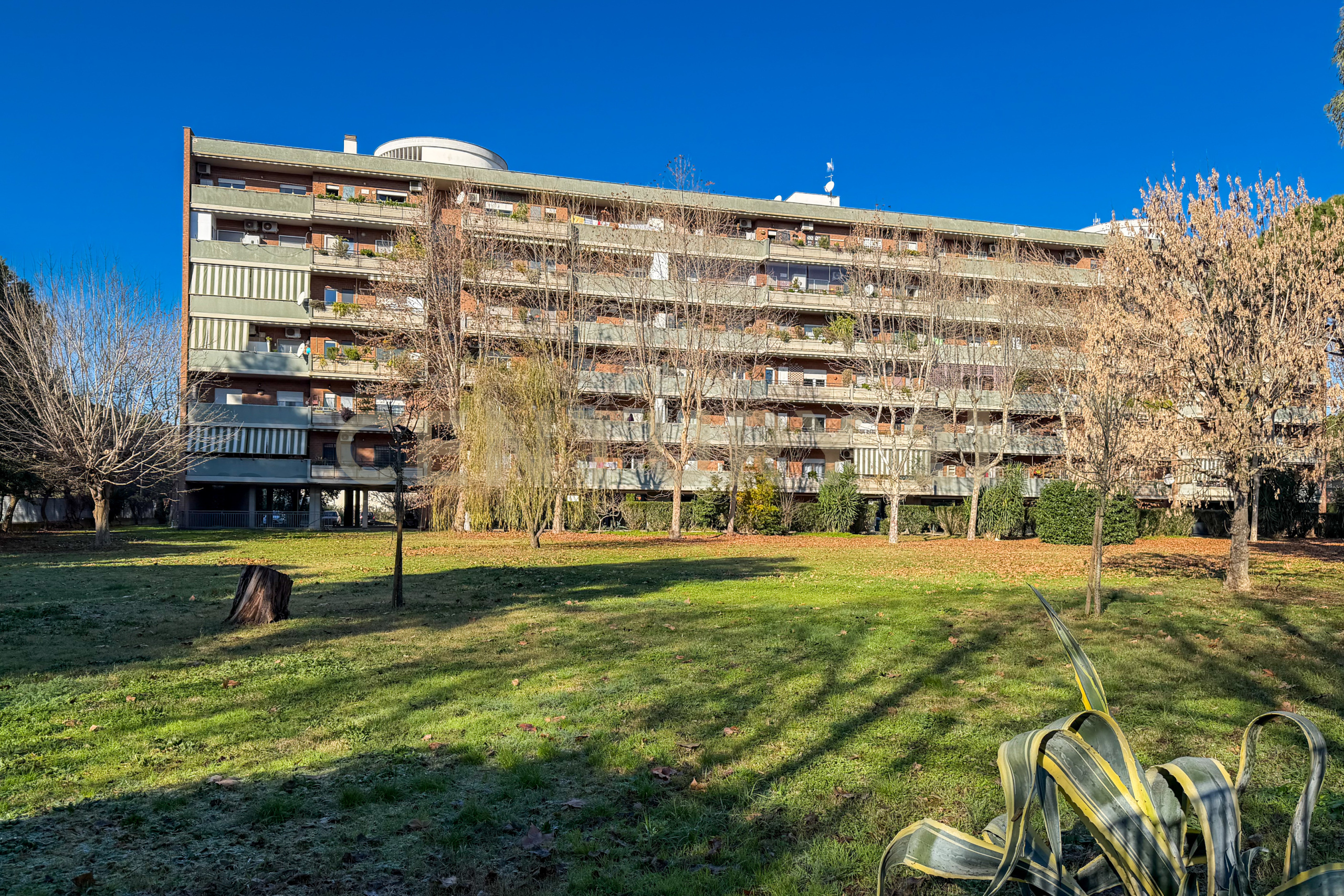 In elegante e riservato contesto residenziale, dotato di parco condominiale curato e ben gestito, proponiamo in vendita un appartamento al primo piano con ascensore all'interno di un palazzo in cortina.