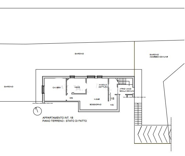 Appartamento in villa posto al piano terreno, distinto con il numero interno 1B, composto da piccolo locale di ingresso corridoio, soggiorno con angolo cottura, disimpegno, una camera e bagno, per una superficie commerciale di circa mq 56, con circostante ampio giardino di pertinenza esclusiva.