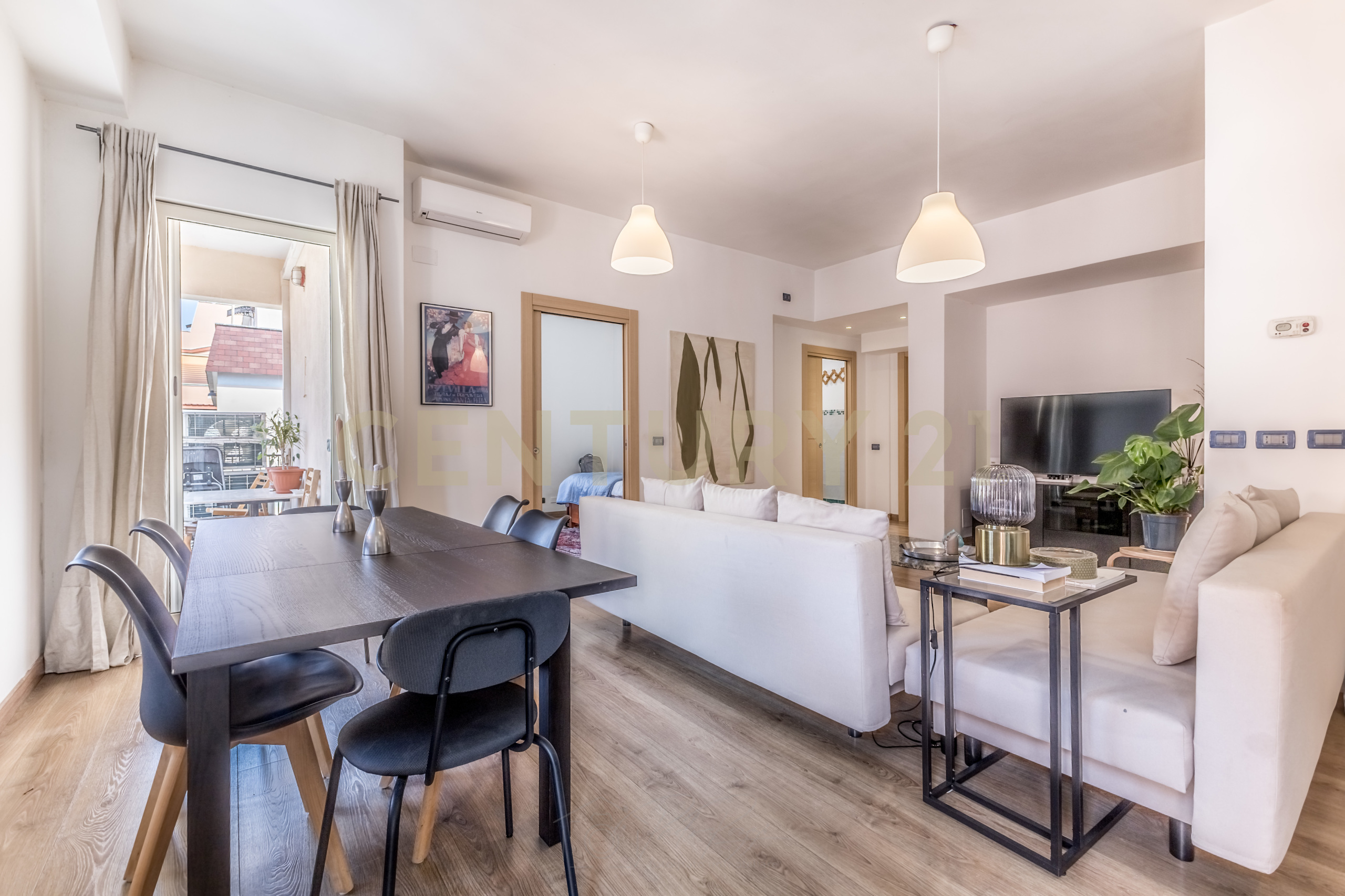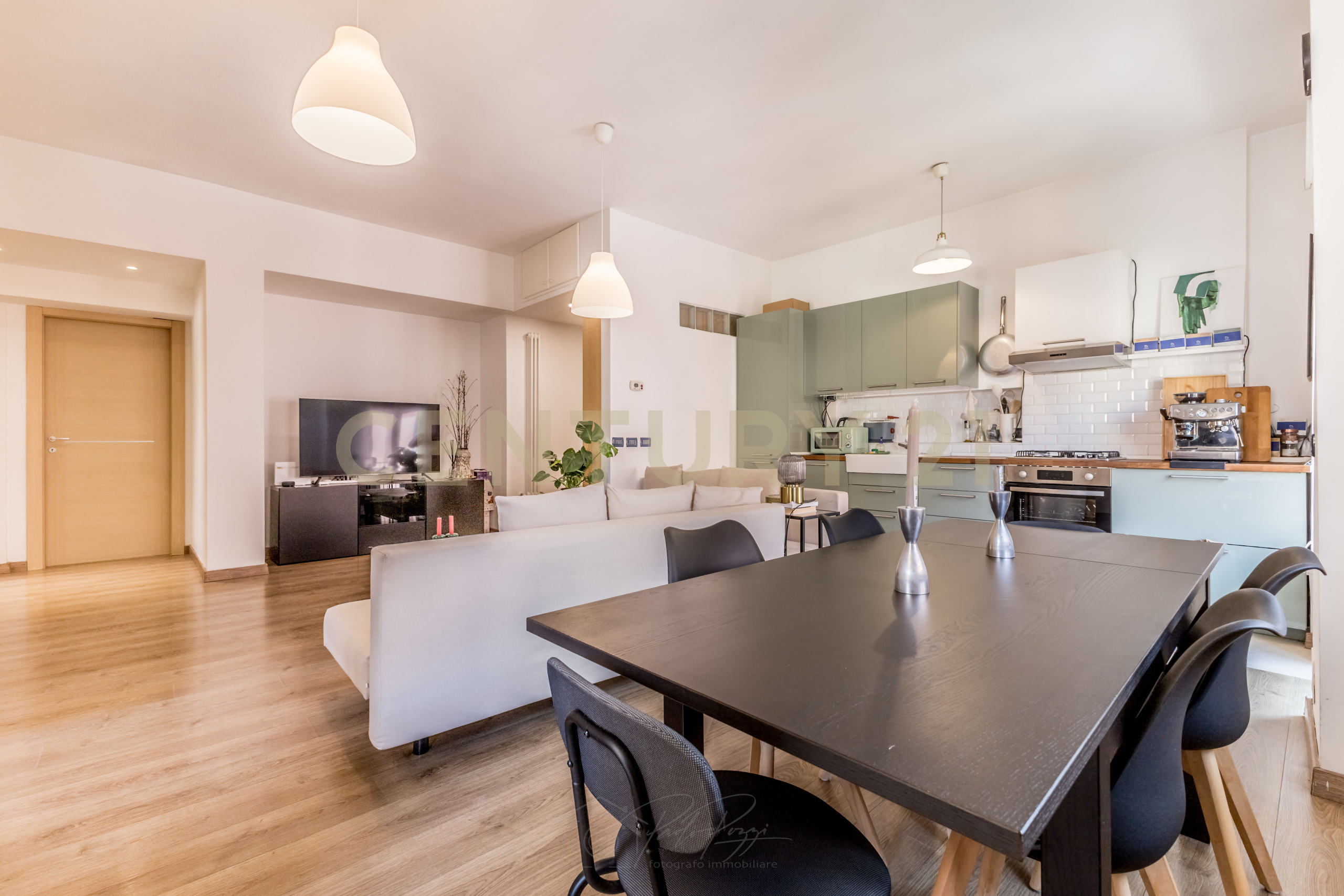 Composizione interna: - Ingresso su ampio salone con cucina a vista - Camera matrimoniale con bagno en suite - Seconda camera da letto - Bagno principale - Due balconi, di cui uno vivibile - Soffitta di pertinenza - Terrazzo panoramico non a livello di circa 25 mq La tripla esposizione dona luce naturale in ogni ambiente, mentre il riscaldamento autonomo garantisce comfort ed efficienza.
