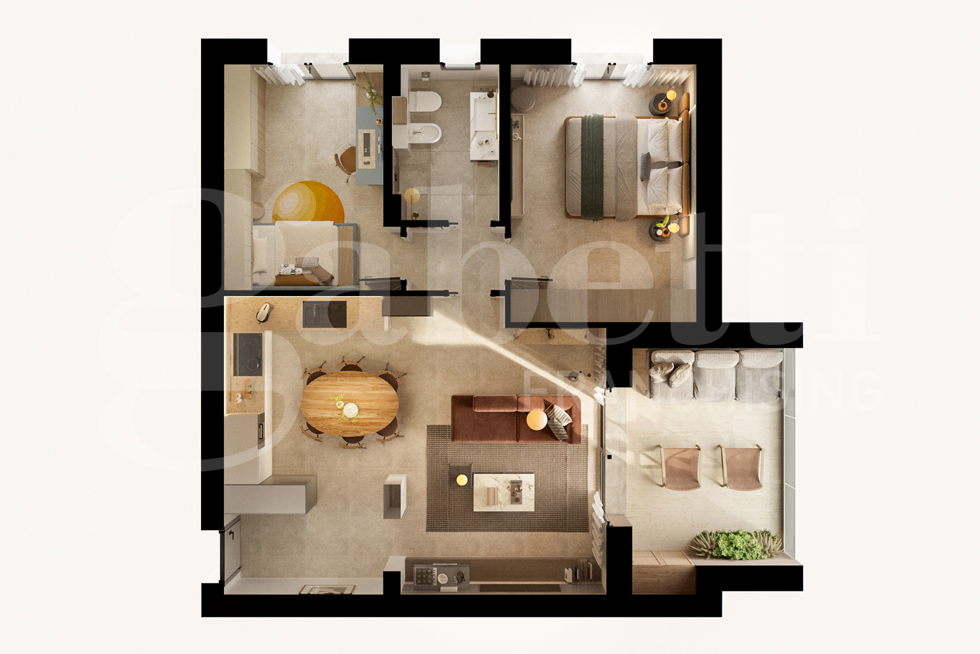 Le immagini sono state realizzate sulla base del progetto esecutivo con finiture e materiali previsti nel capitolato delle opere.