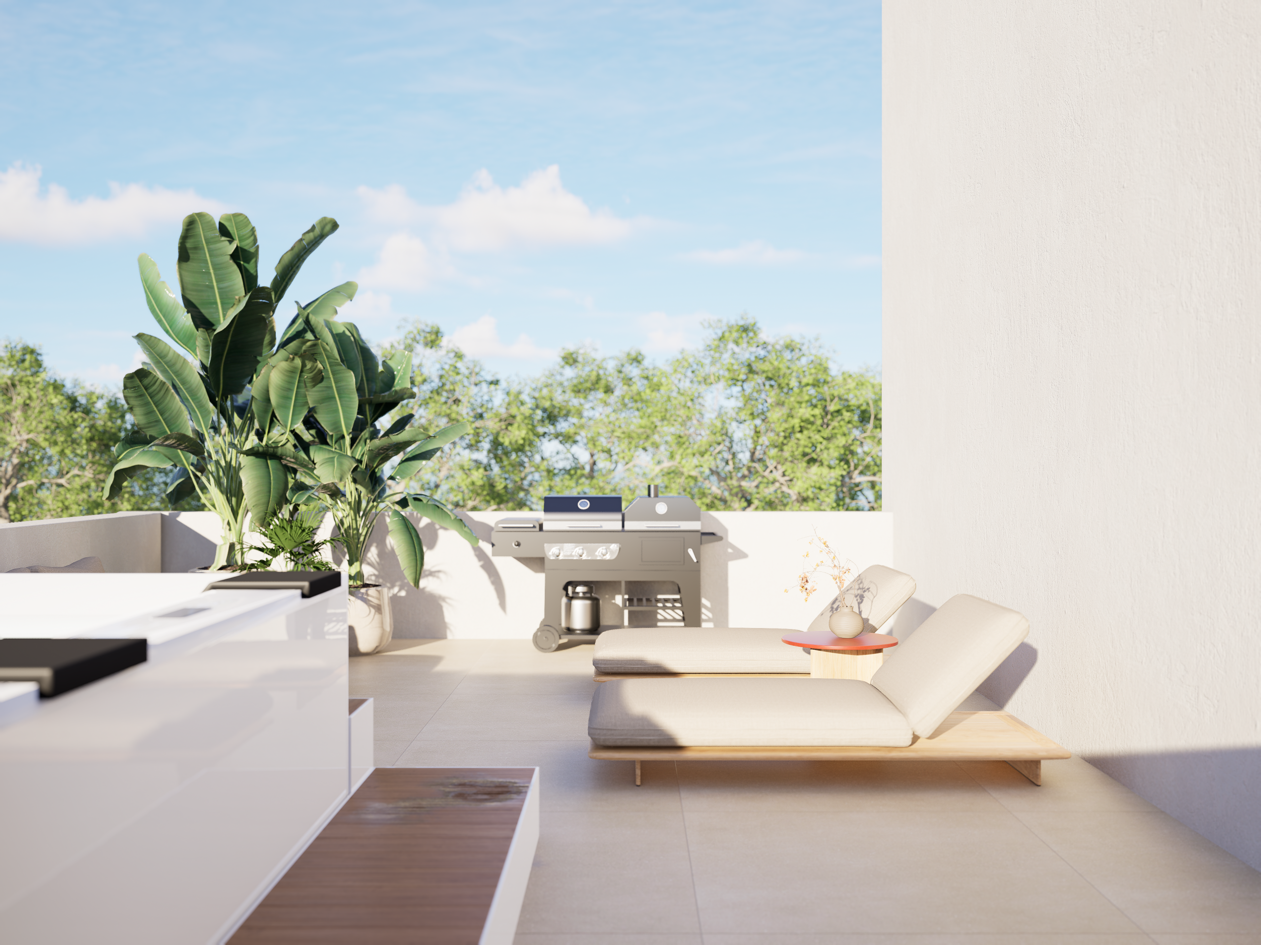 La consegna è prevista entro il 31 dicembre 2026. Lappartamento, posto al piano terra, si sviluppa su 116 mq commerciali, con ampia metratura interna sapientemente distribuita e un ampissimo spazio esterno, un terrazzo a livello, protagonista dellabitazione: ampi spazi allaperto con vista sulla piscina del complesso, perfetti per vivere momenti di relax, per pranzare allesterno e per ammirare scorci di mare che rendono la proprietà ancora più suggestiva.
