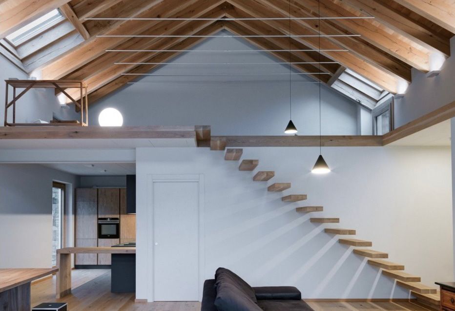 La distribuzione interna potrebbe prevedere una zona giorno luminosa con cucina a vista e un bagno al piano principale, mentre il sottotetto (secondo livello) accoglie due camere, perfette per realizzare la zona notte.