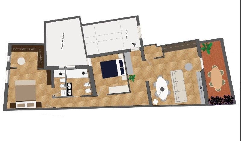 Completa la zona giorno un comodo ripostiglio/dispensa e una terrazza abitabile, ideale per pranzi e cene o momenti relax all'aperto.