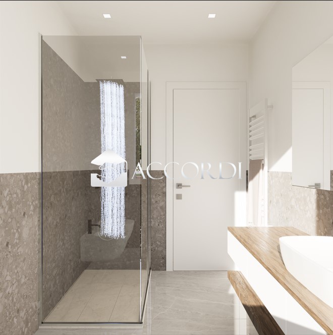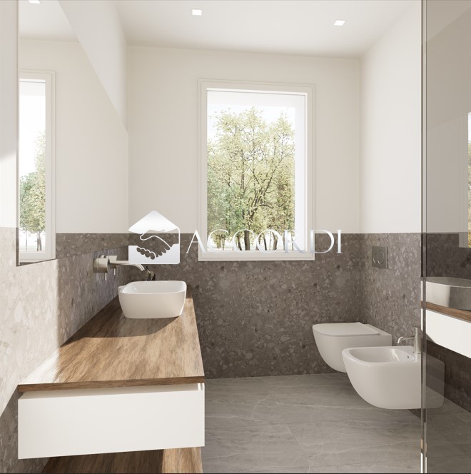 Tra le dotazioni: riscaldamento a pavimento con pompa di calore, fotovoltaico, aria condizionata, tende oscuranti elettriche, sensori d'allarme, zanzariere.