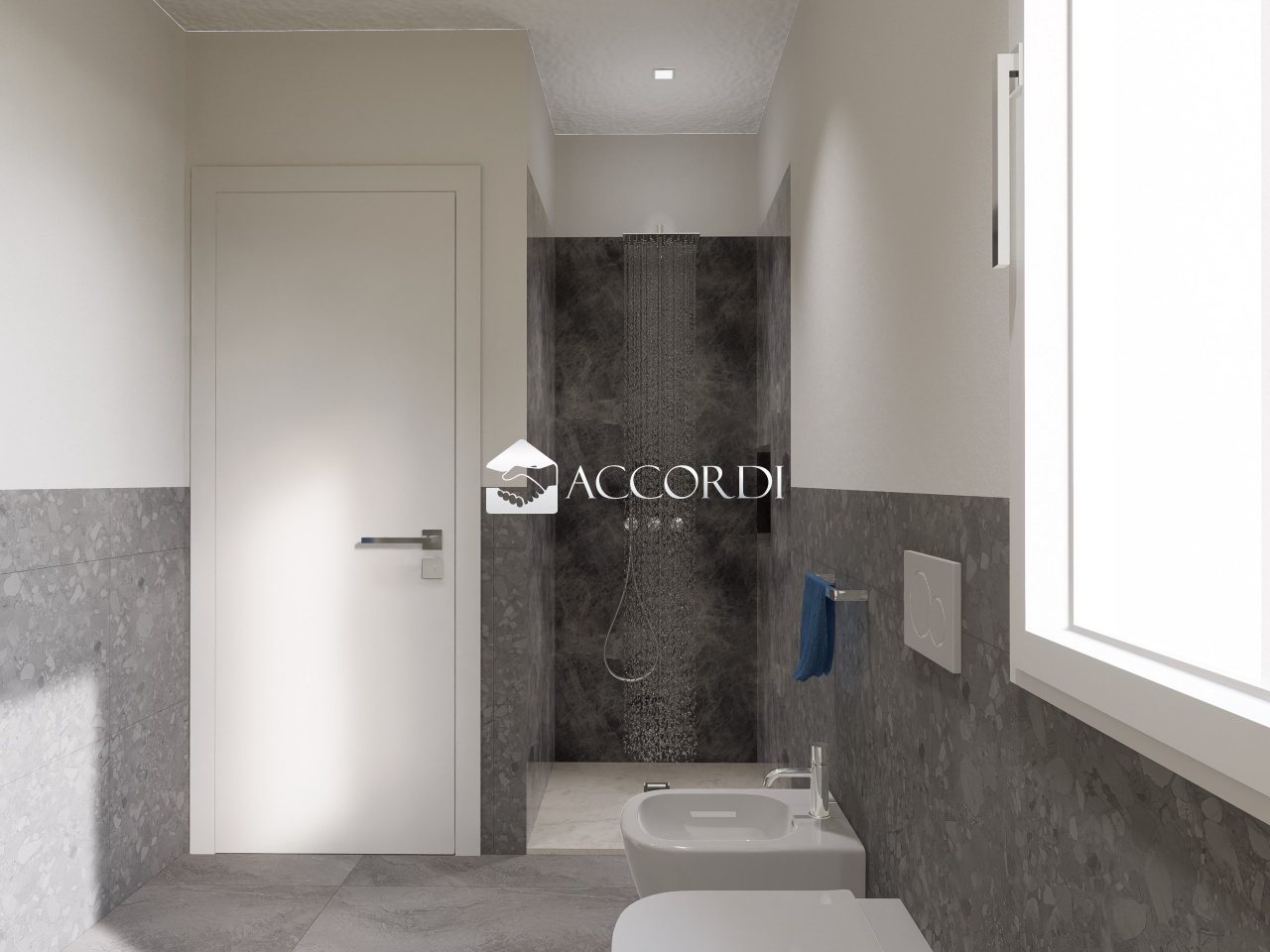 L'immobile è situato al primo piano ed è composto da una zona giorno con ampio openspace completo di terrazza e da una zona notte con due grandi camere, di cui una con terrazza, due bagni e un comodo disimpegno.