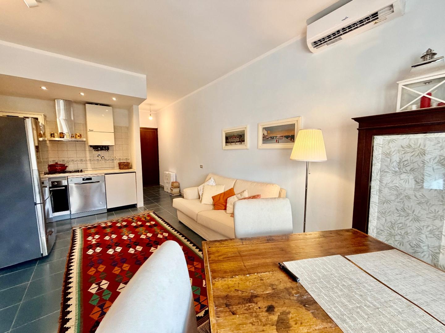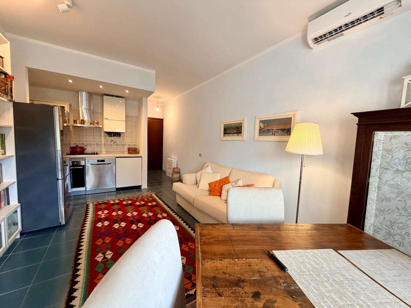 Limmobile è composto da ingresso su luminoso soggiorno con cucina a vista, dal quale si accede a un terrazzo vivibile, ideale per momenti di relax allaperto.