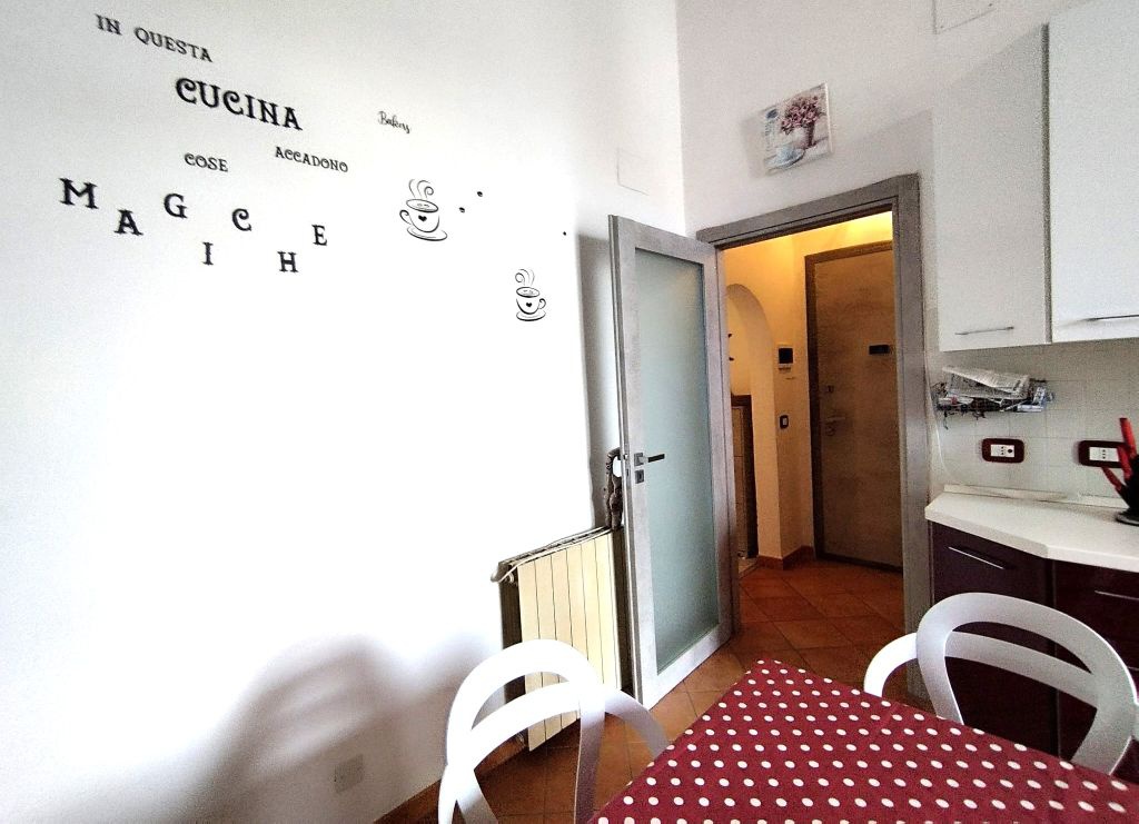dalla cucina si accede all'ampia terrazza, la sala puo' tranquillamente trasformarsi in seconda camera matrimoniale.