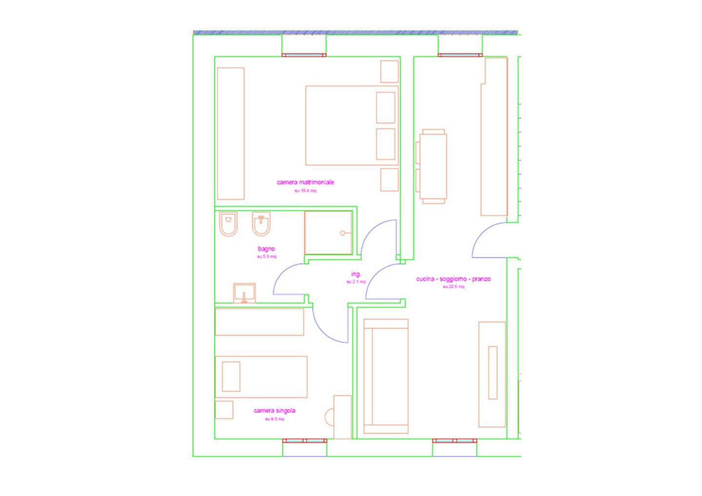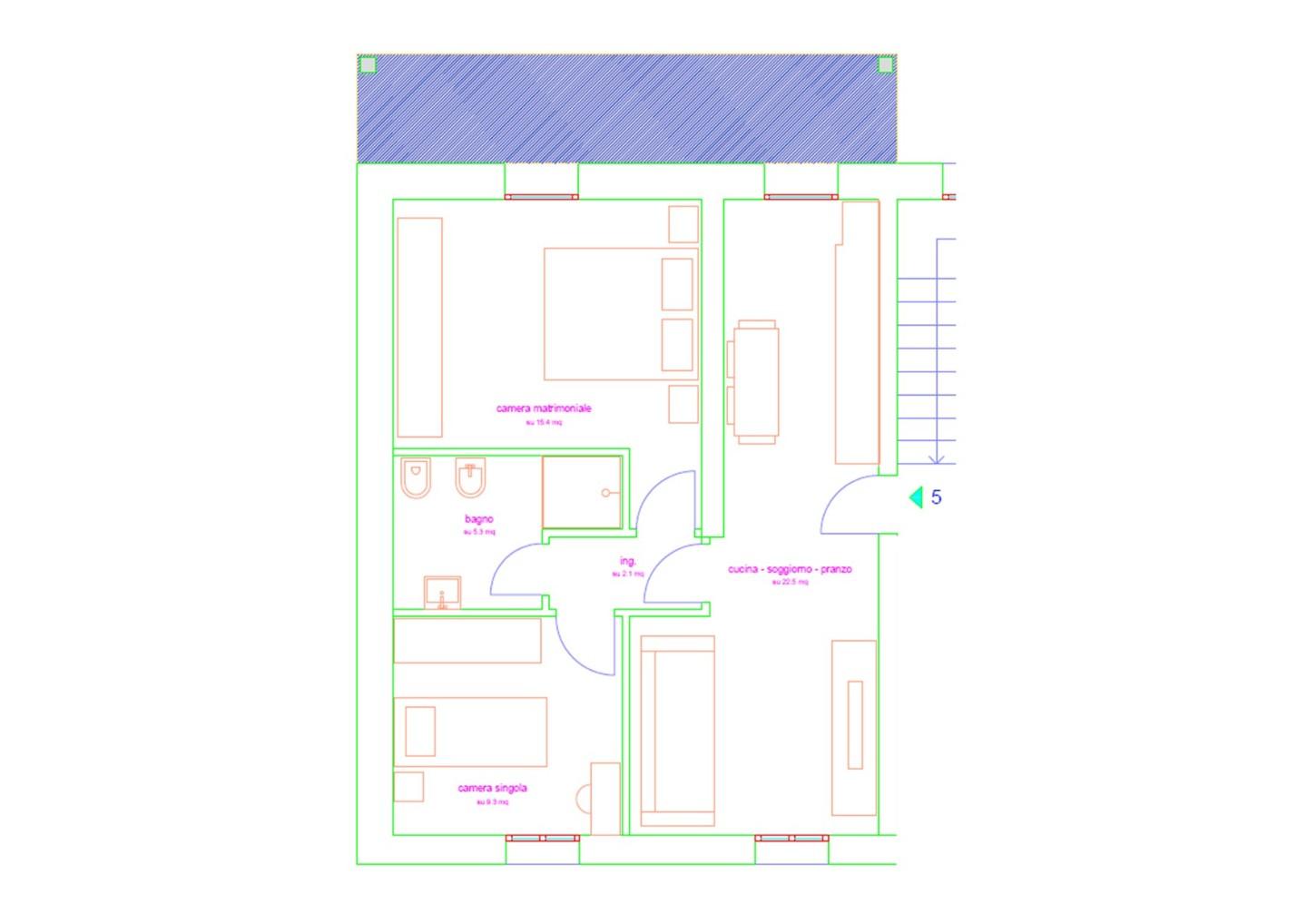 Limmobile è composto da: ingresso, zona giorno con angolo cottura e accesso diretto alla terrazza, ripostiglio, disimpegno notte, camera matrimoniale, camera singola e bagno.