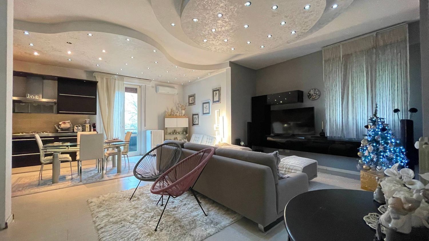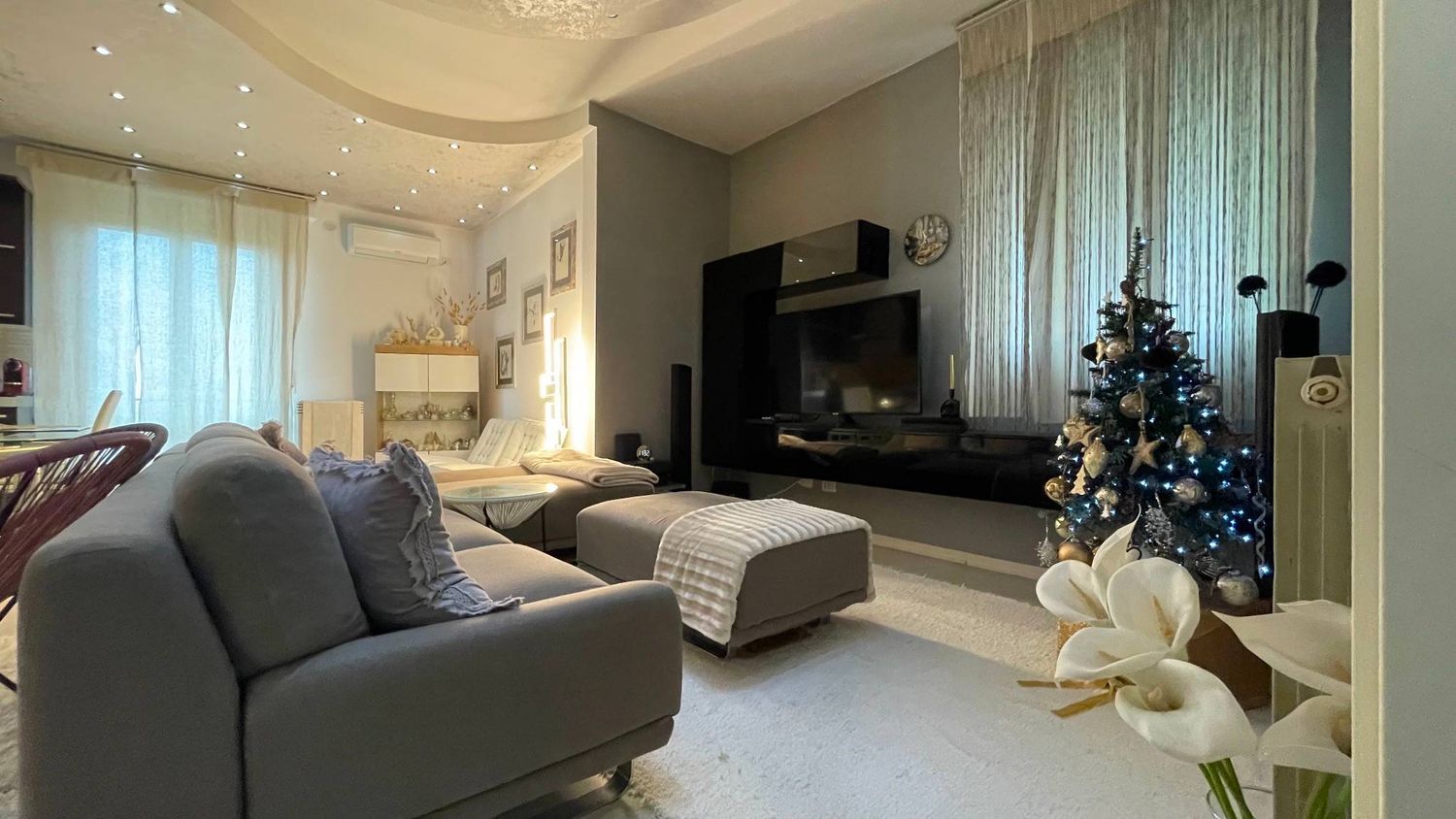 L'intero appartamento è stato completamente ristrutturato, con impianti idraulici ed elettrici nuovi, pavimento in grès finto legno, infissi in doppio vetro e camera d'aria in PVC, rifinito con arredamento su misura e aria condizionata caldo/freddo.