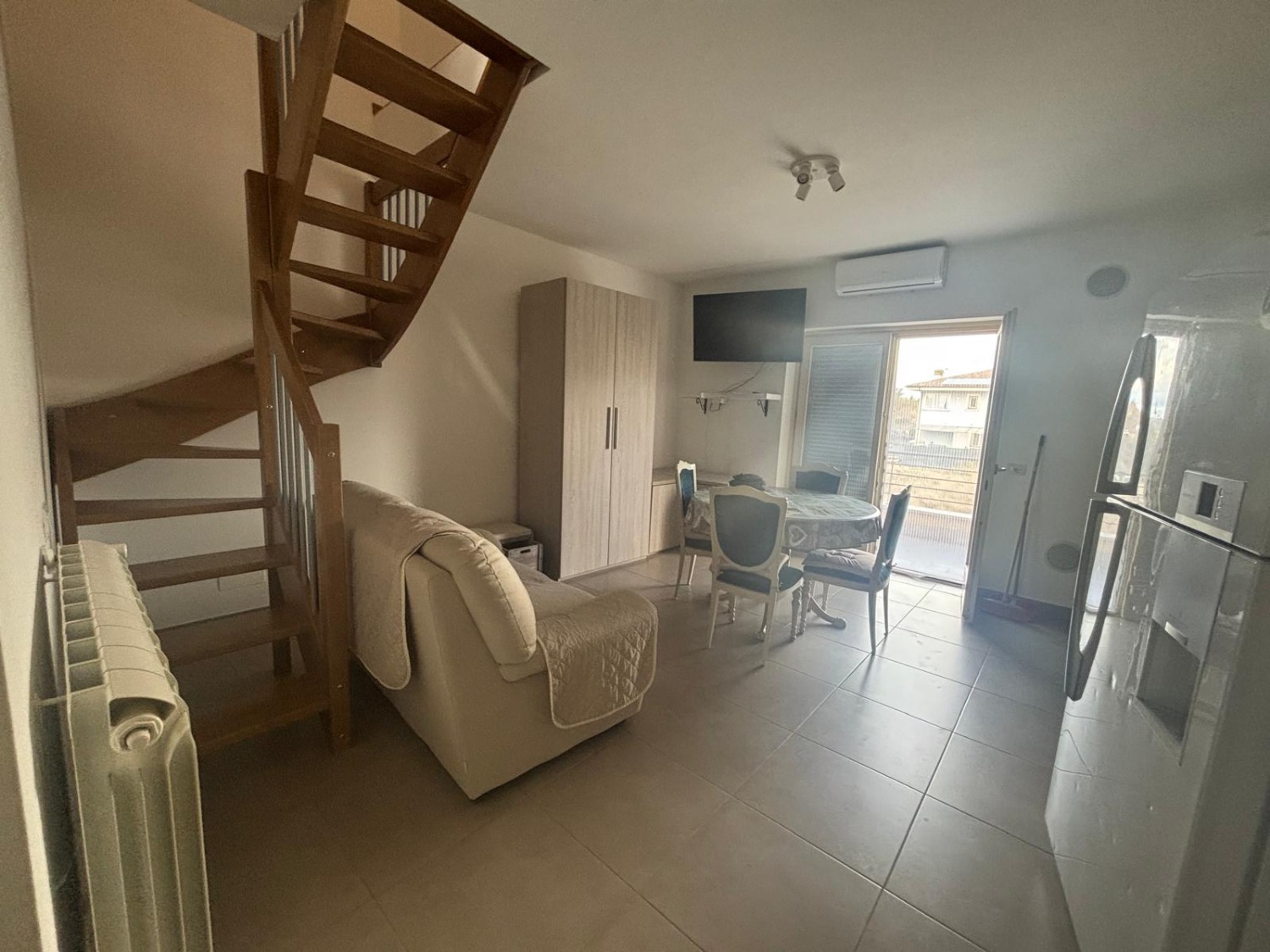 L'immobile è così composto : soggiorno con angolo cottura e balcone, camera/ studio con altro balcone e bagno al piano; al piano superiore troviamo la camera da letto padronale e altro bagno.