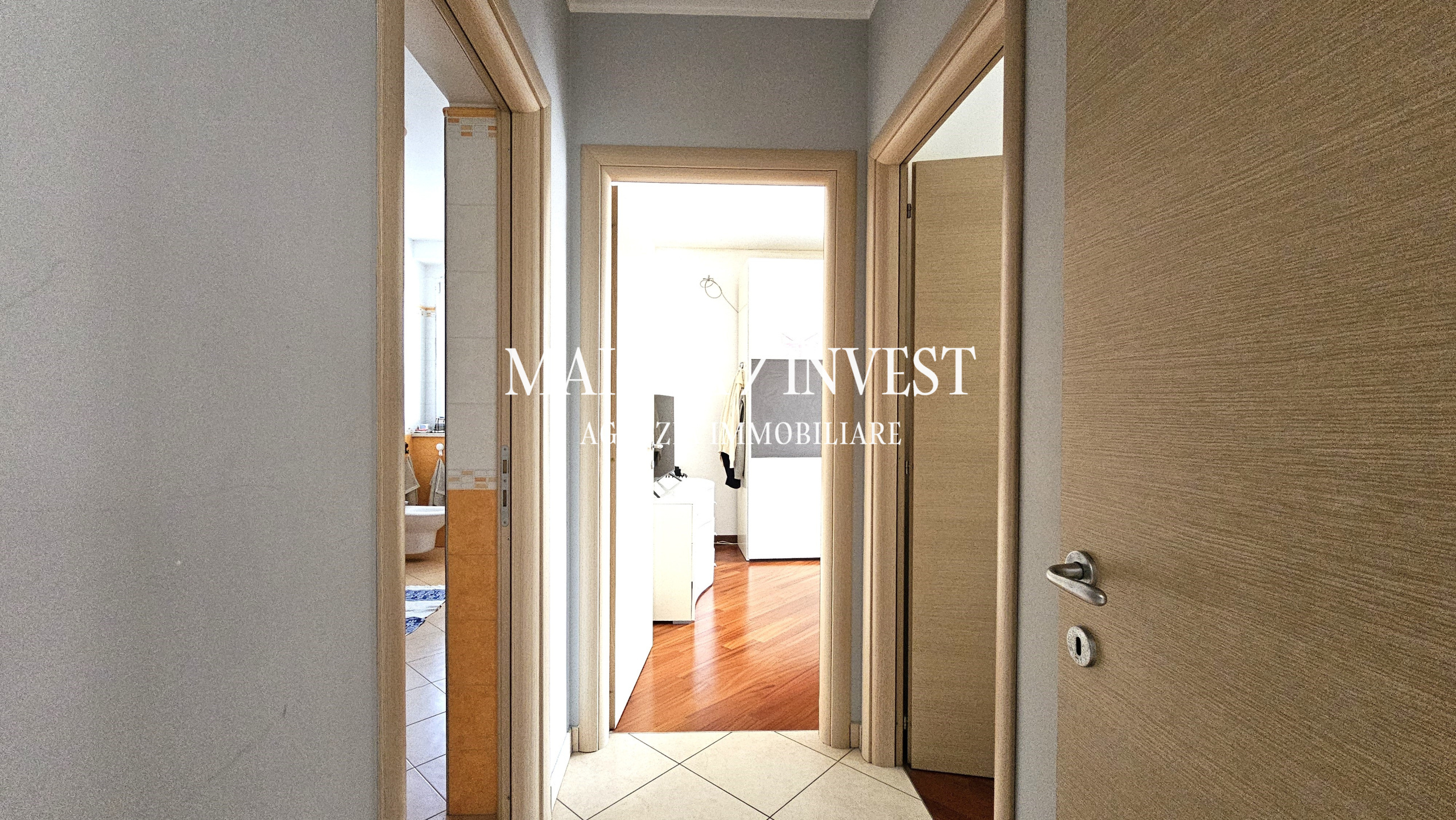 L'immobile ha una superficie di circa 71 mq ed è composto da ingresso su soggiorno con angolo cottura open space (possibilità di dividere i due ambienti) disimpegno, due camere di cui una matrimoniale e una cameretta/studio, un bagno finestrato e un balcone angolare di circa 24 mq. Completa la proprietà una porzione di terrazza sovrastante di totali mq 15. L'immobile ultimato nel 2008 dispone di riscaldamento autonomo a metano, portoncino blindato, infissi in alluminio con doppio vetro, persiane e aria condizionata.