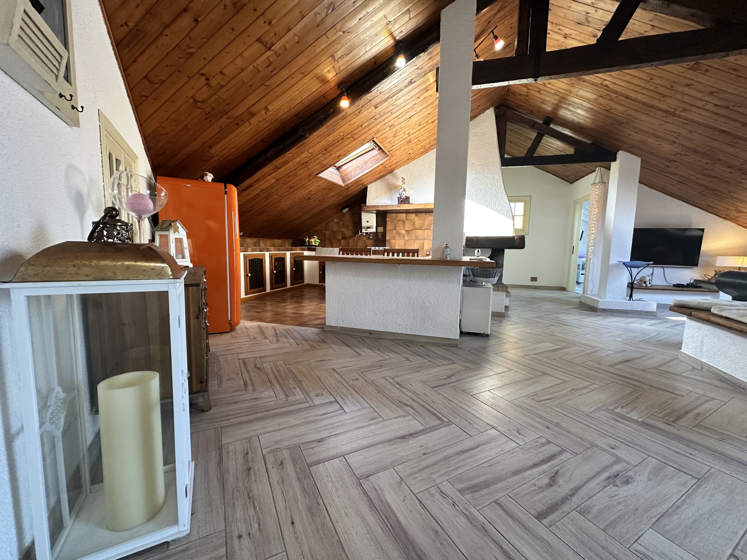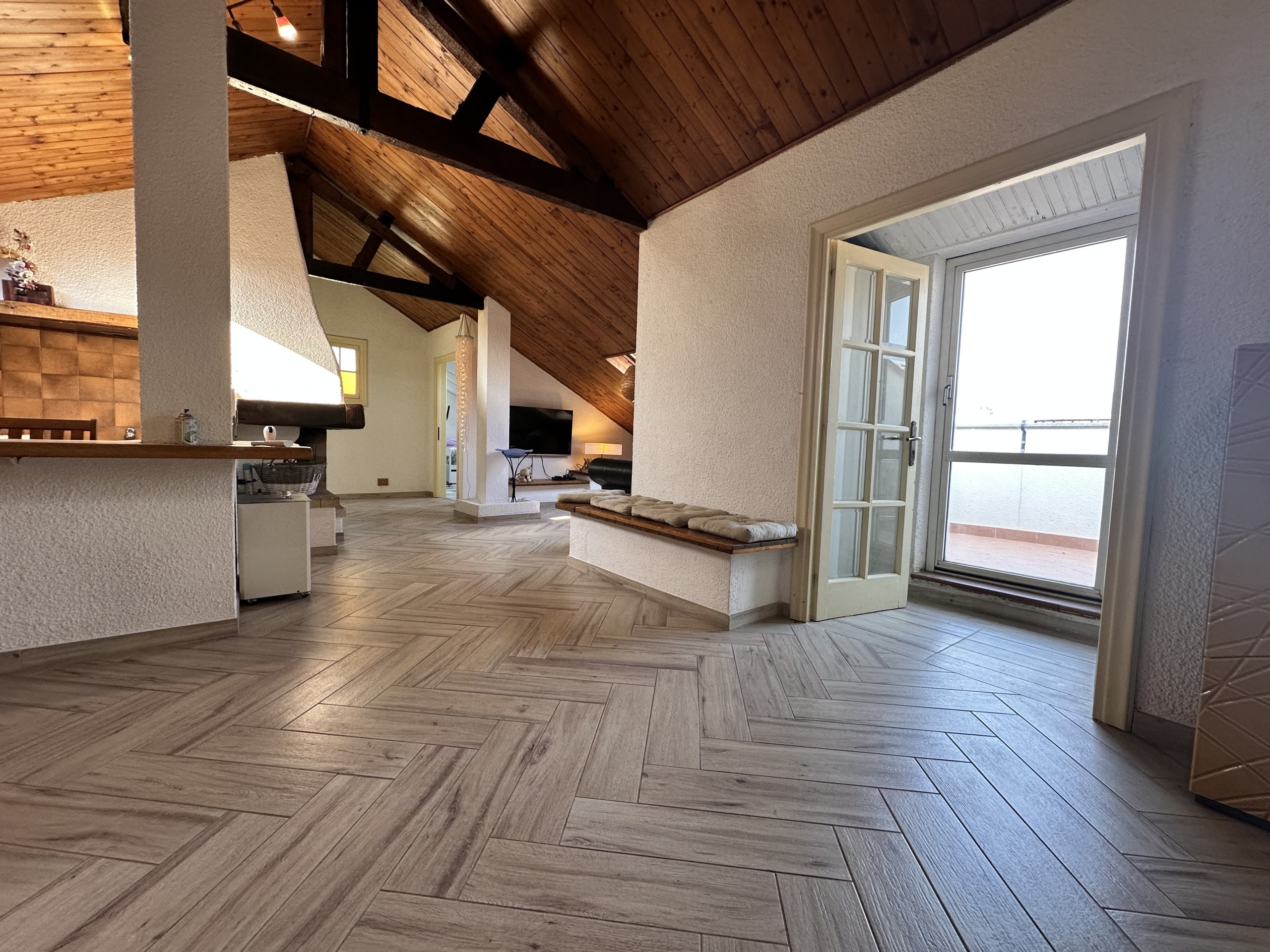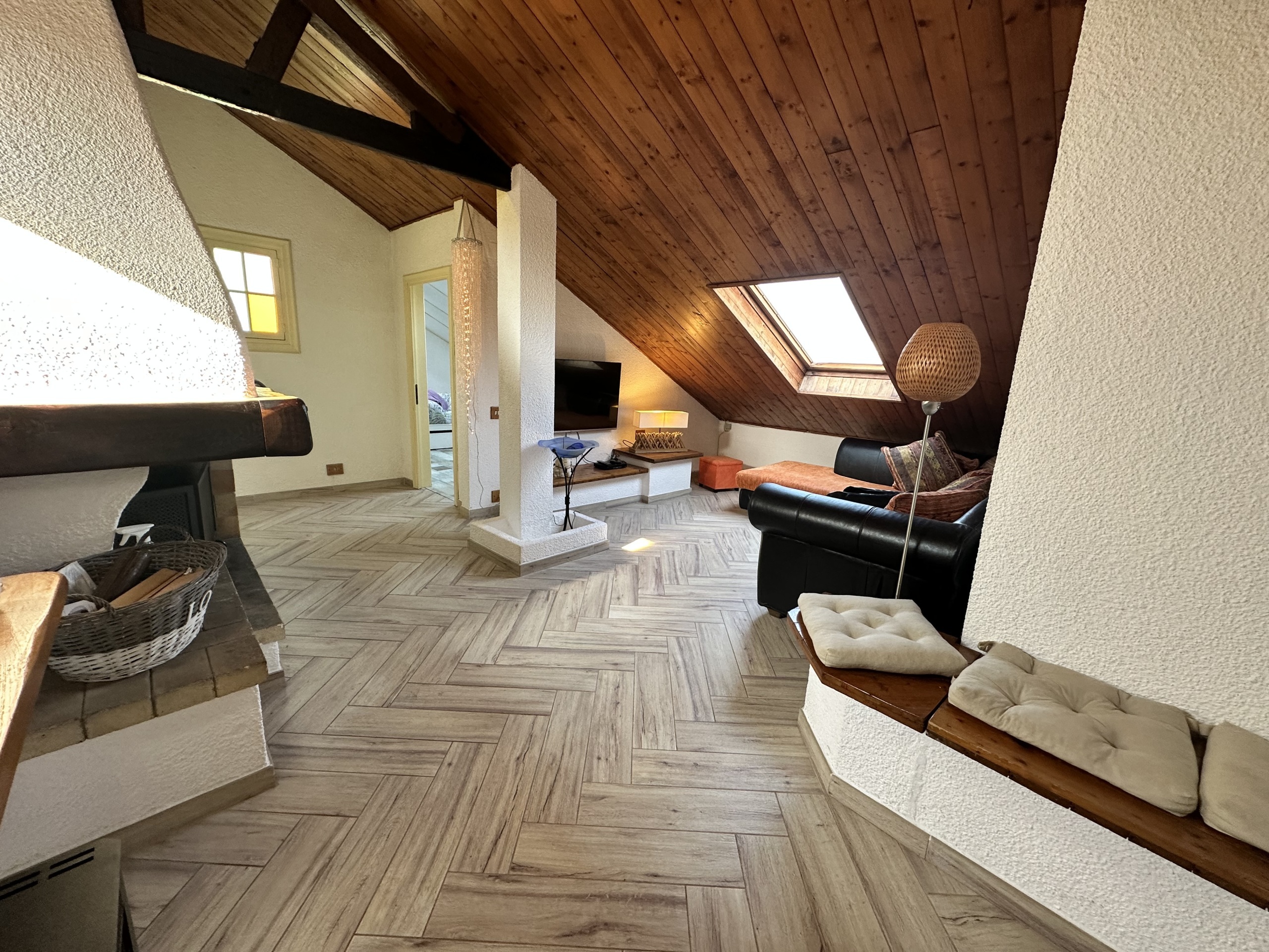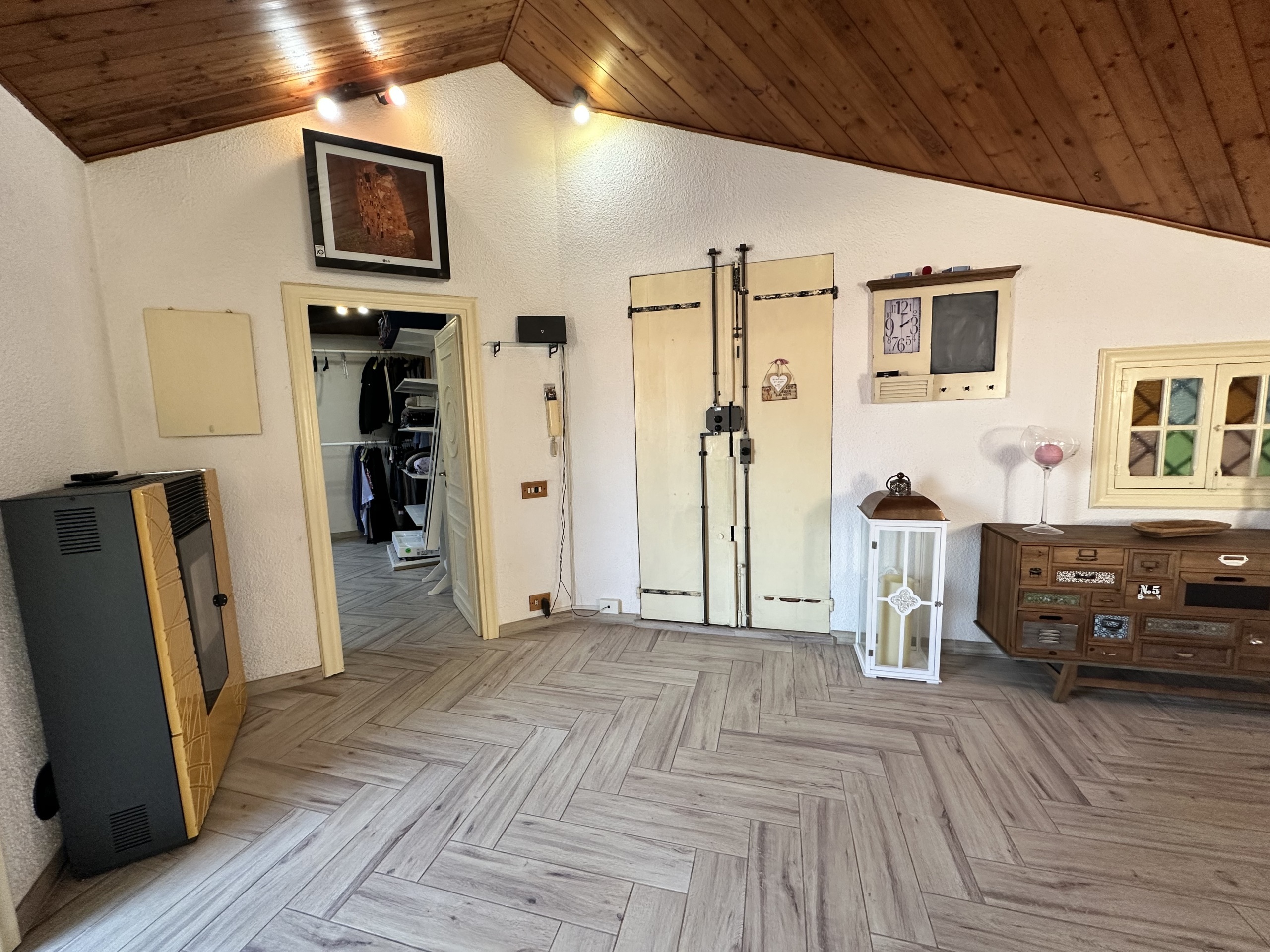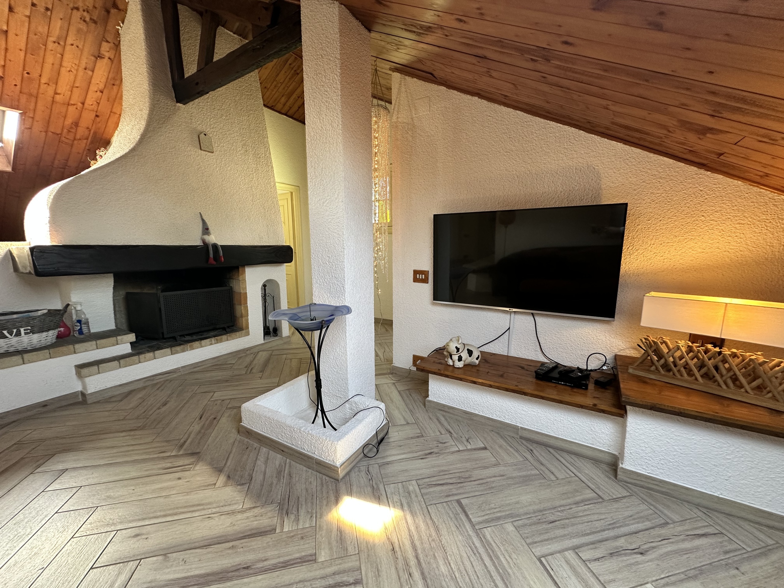 Limmobile è composto da ingresso su zona soggiorno con cucina in muratura a vista, due camere, bagno finestrato con vasca, ripostiglio ed il soleggiato terrazzo vivibile di circa 8 mq con vista sulla città. Limpianto di riscaldamento è autonomo con limpianto di climatizzazione con sistema a pompa di calore, la stufa a pellet e il caminetto a legna.
