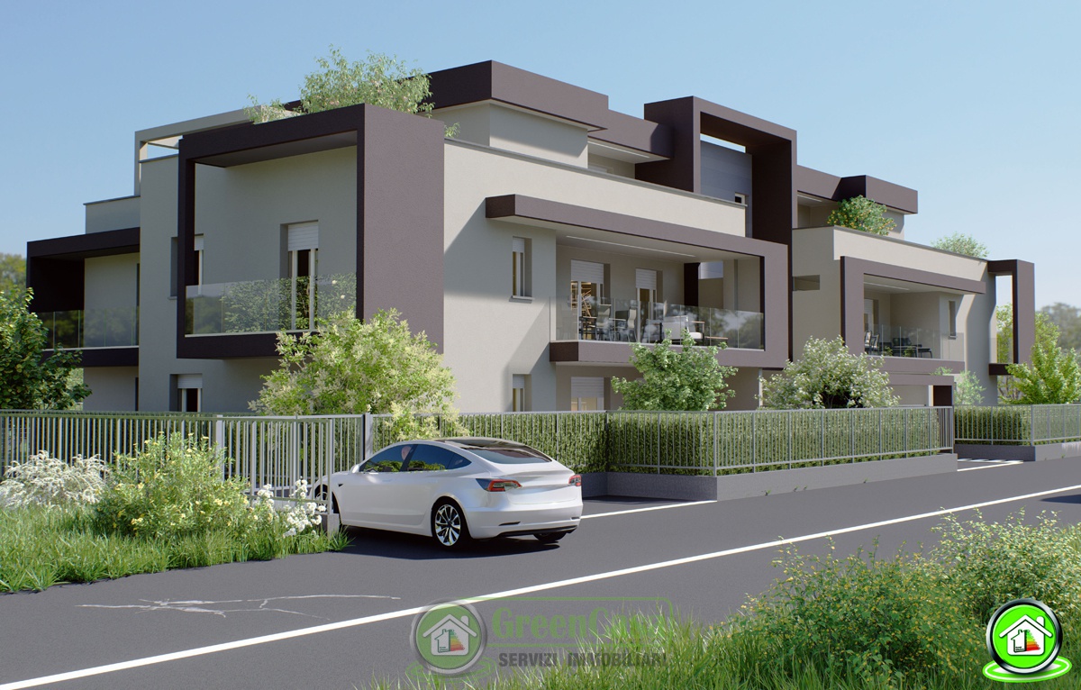EURO 252.000,00 Possibilità ampi box a partire da EURO 24.500,00 Costruzione improntata al risparmio energetico: -isolamento termico costituito da cappotto 12/14 cm - serramenti esterni in pvc in classe A basso emissivo e gas argon - VMC per riciclo d'aria -Tapparelle elettriche in alluminio coibentato -Impianto di riscaldamento realizzato mediante approvvigionamento da centrale termica alimentata a gas metano, di tipo centralizzato con contabilizzazione dei consumi autonoma nonché ausilio di pannelli radianti a pavimento -Fotovoltaico -Porte interne in legno melaminico lucido variante in 7 colori -Pavimenti e rivestimenti in gres porcellanato -Sanitari IDEALSTANDARD ala sospesa -Videocitofono -Predisposizione climatizzazione e antifurto -Box dotati di predisposizione per rete ricarica auto elettrica.