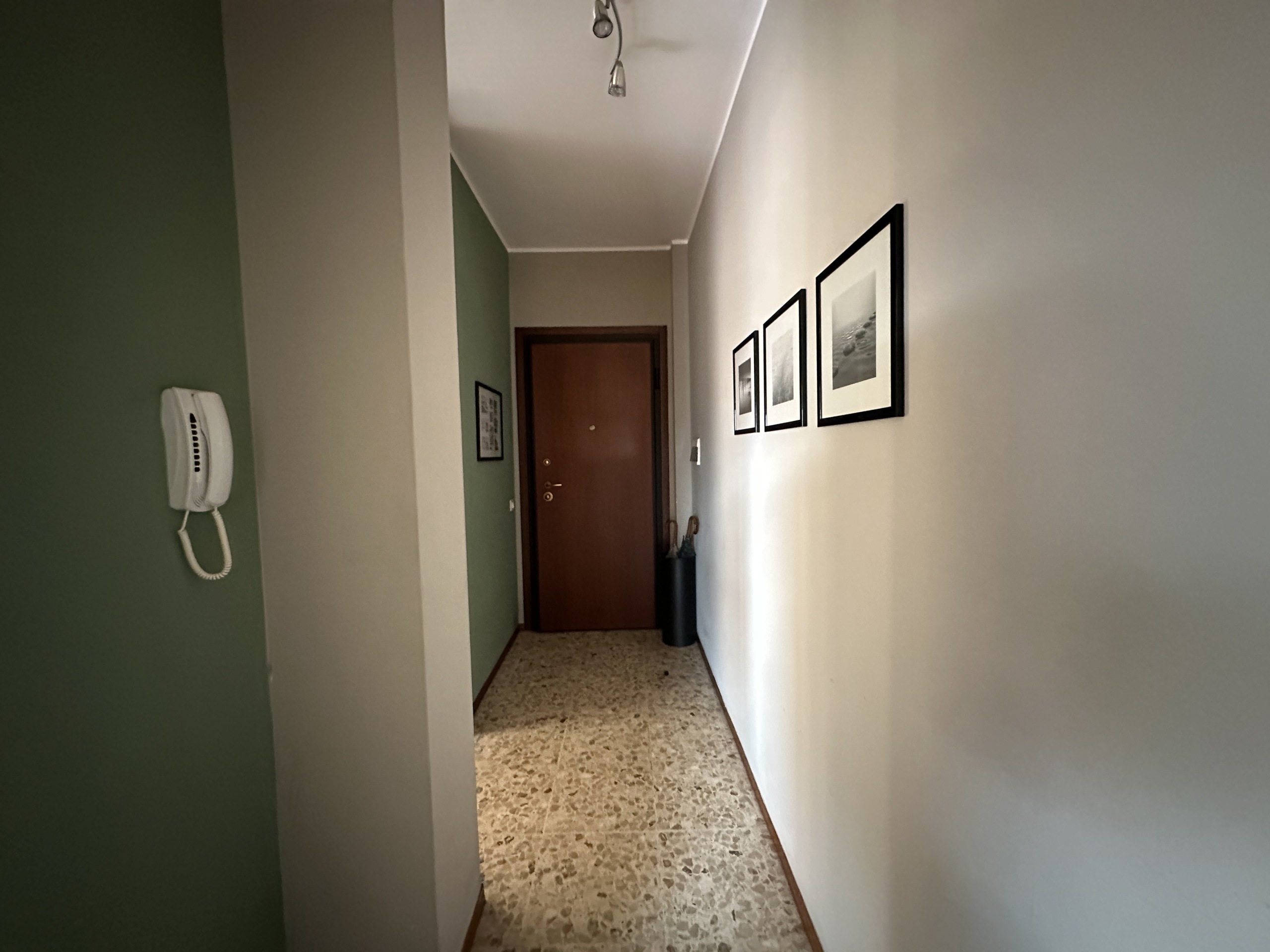 Lappartamento è completamente arredato ed è così composto: Ingresso Soggiorno luminoso con accesso al terrazzo Cucina separata e vivibile, anchessa collegata al terrazzo Camera matrimoniale Bagno con box doccia Terrazzo coperto, perfetto per mangiare allaperto Completano la proprietà: Box auto doppio in lunghezza (stile anni '70, quindi lungo ma stretto) Doppia cantina, ideale per chi necessita spazio extra.