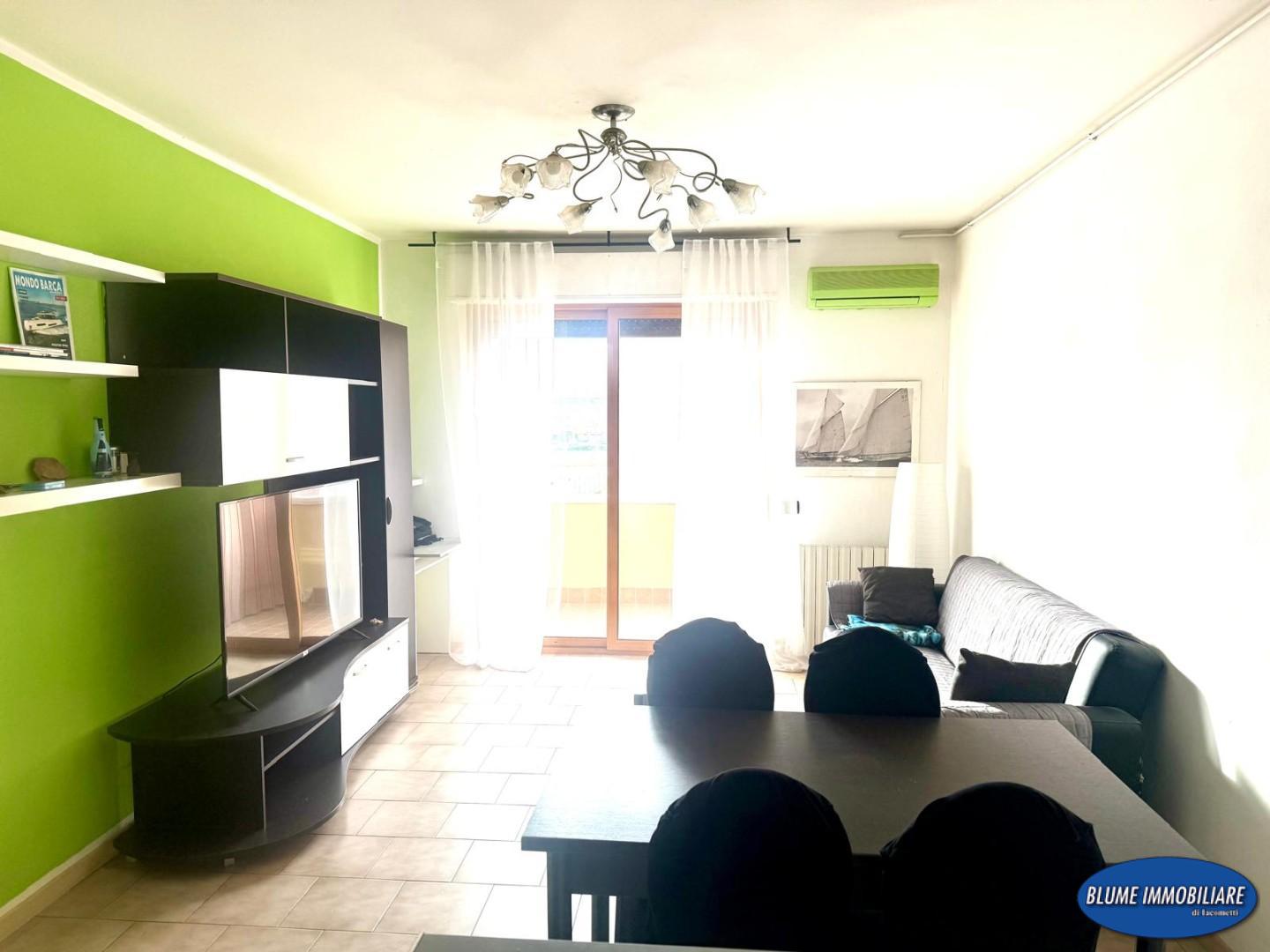Si compone di soggiorno/pranzo con cucina a vista e accesso a terrazza, disimpegno, una camera matrimoniale, una cameretta ed un bagno con vasca e finestra.