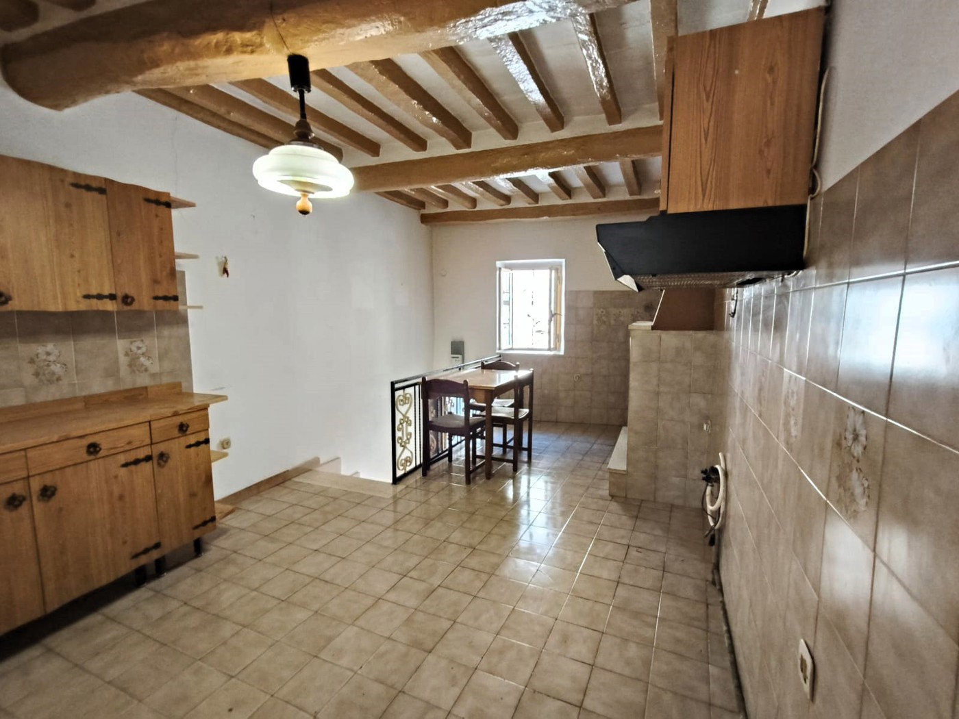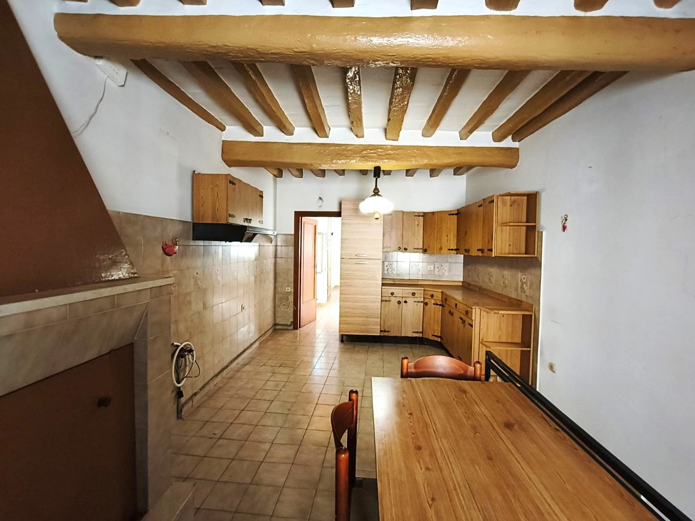Lingresso principale conduce, tramite una comoda scala, al piano rialzato dove troviamo la zona giorno con angolo cottura, accogliente e funzionale e con travi a vista.