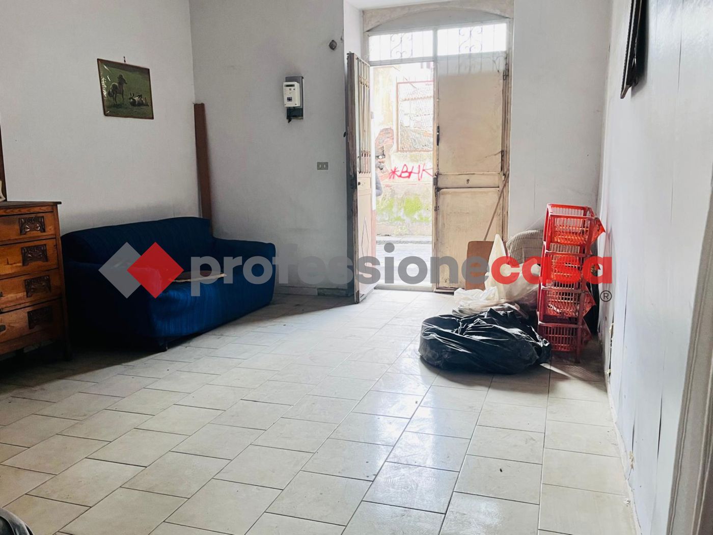 L'immobile posto al piano terra con ingresso indipendente dalla strada composto internamente da : ampio vano di mq 25 circa con annesso ripostiglio, a seguire camera da letto, cucinotto con esposizione su un cortile interno di esclusiva pertinenza di mq 15 circa e servizio con vasca.