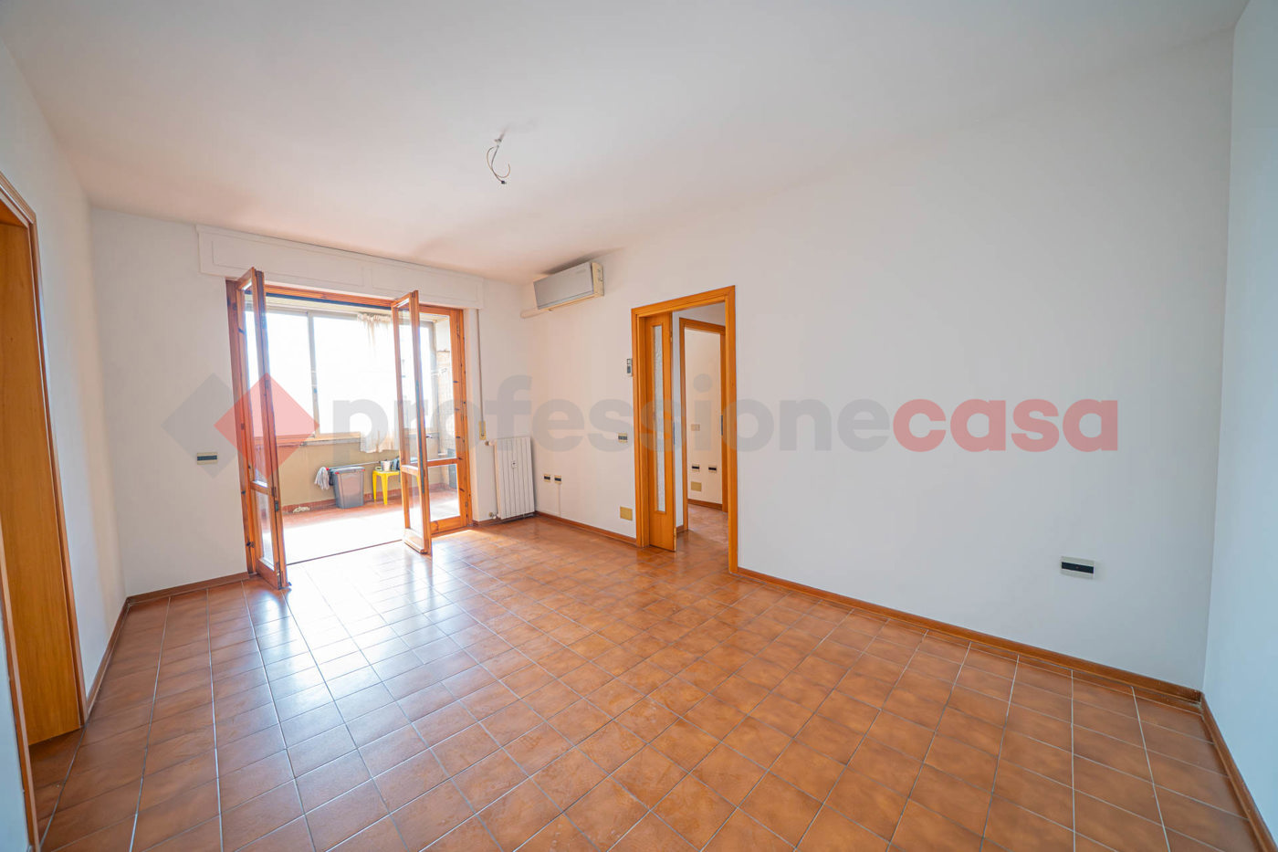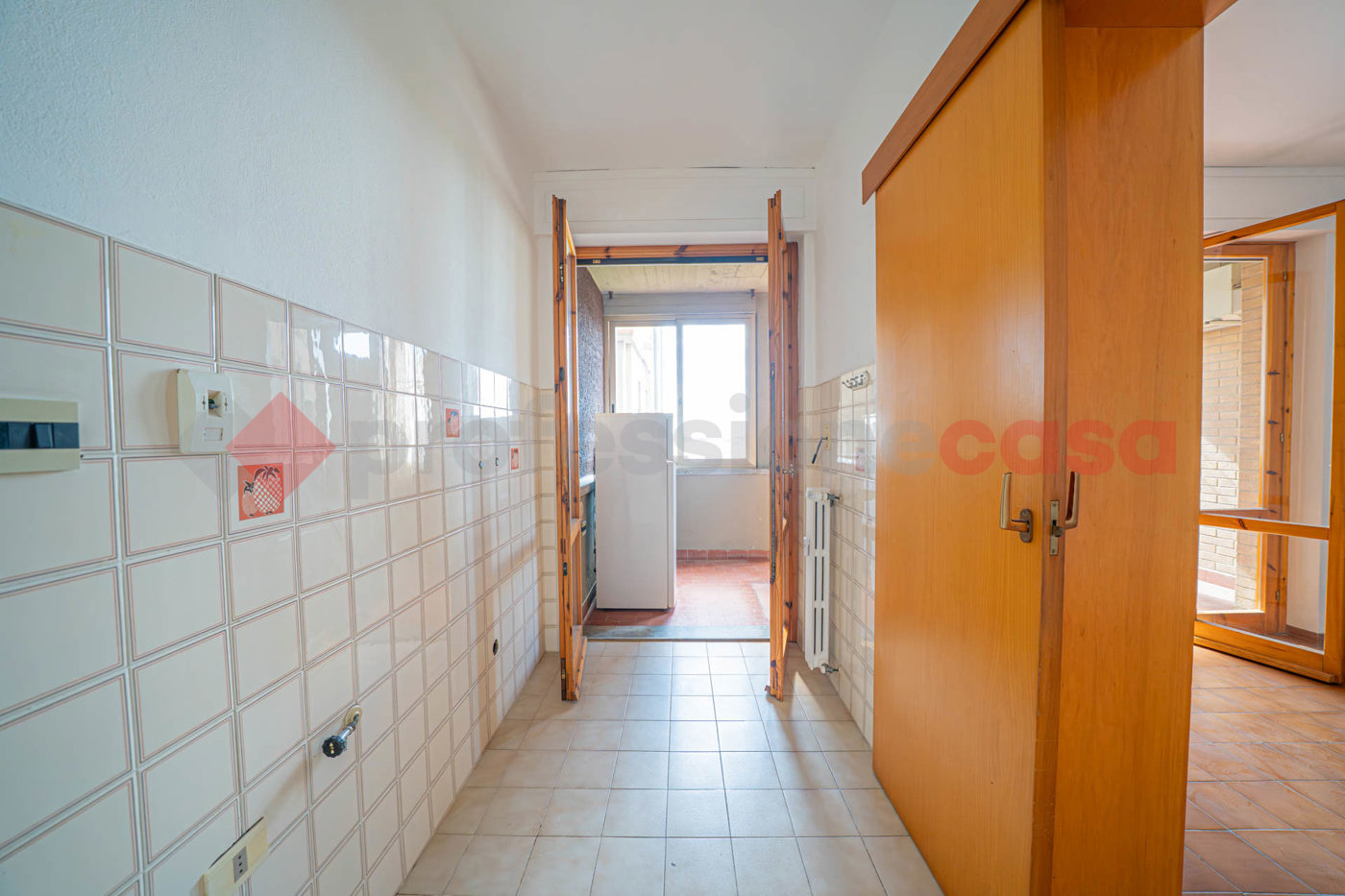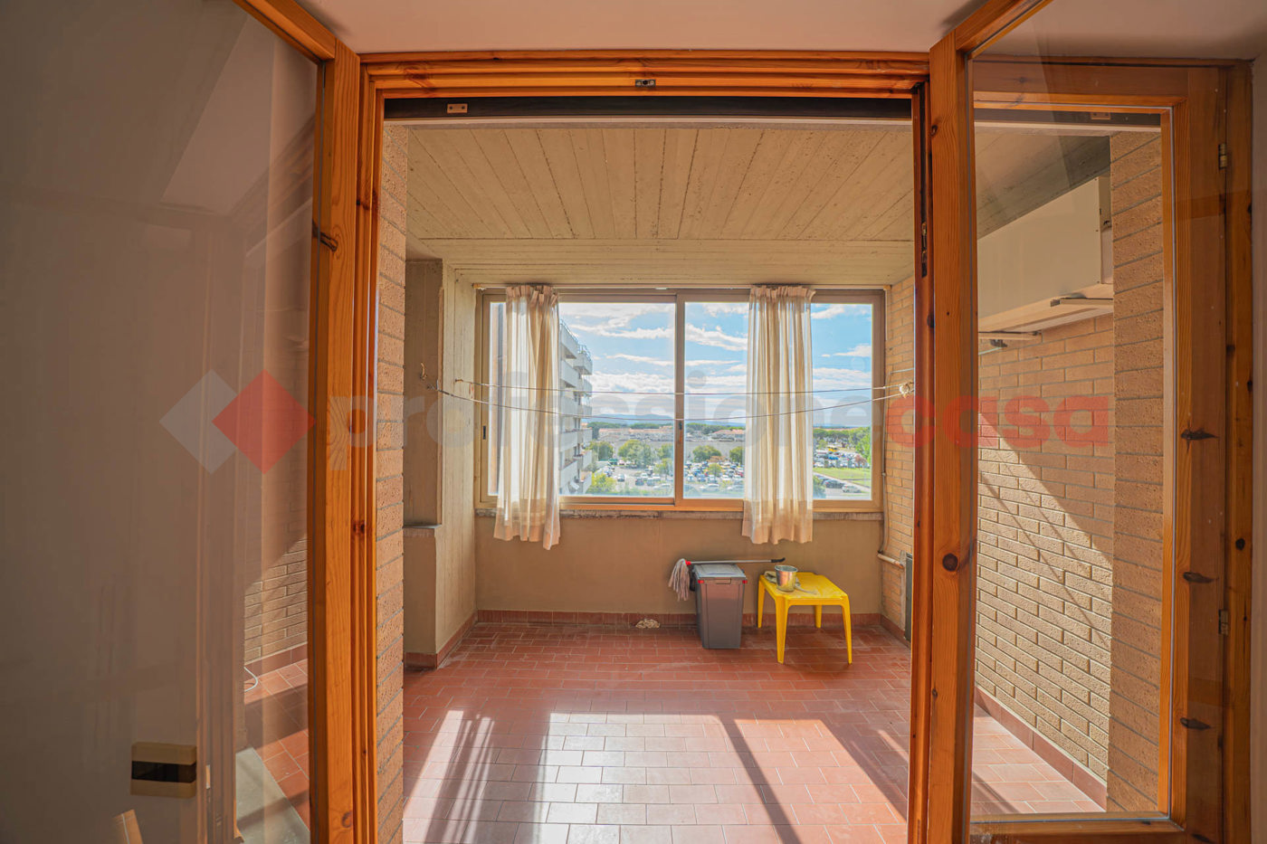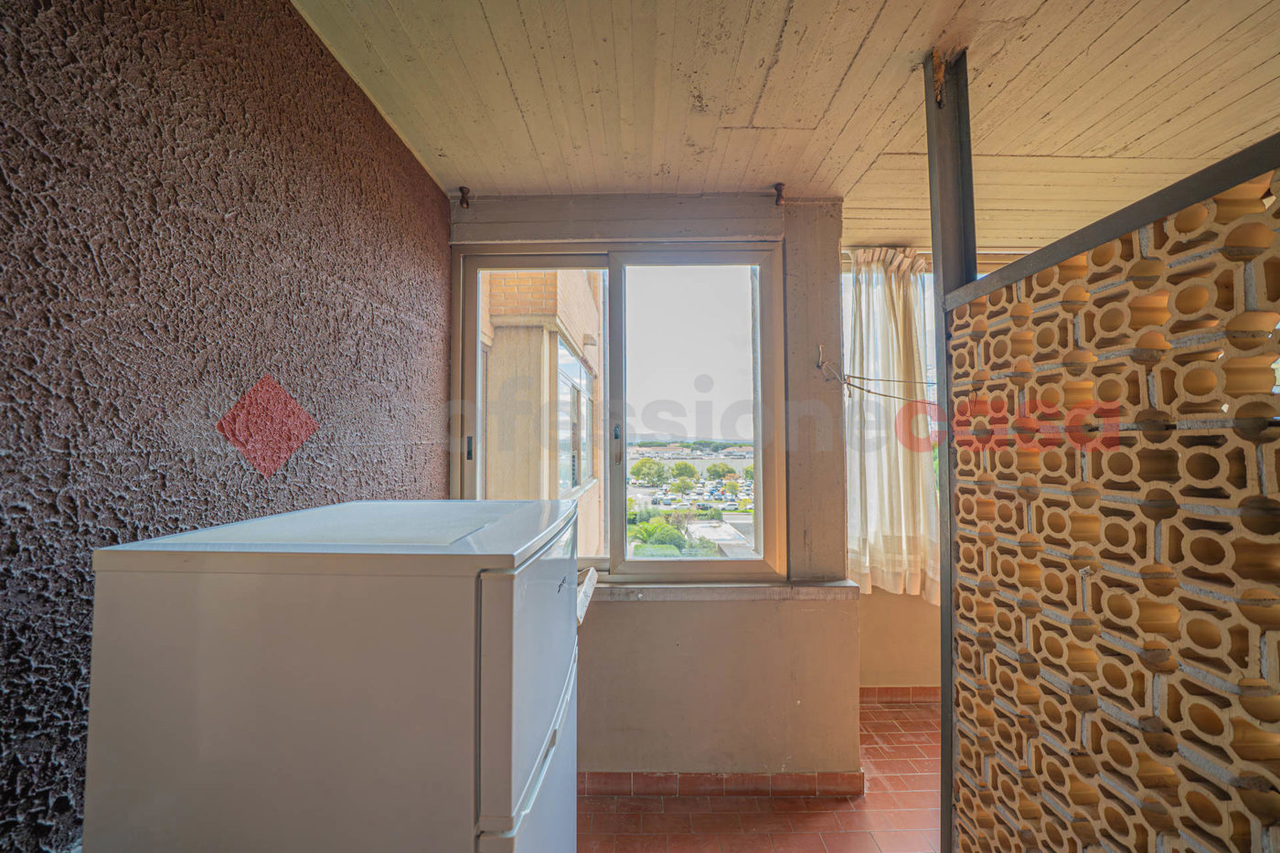 La propriet, sita al quarto piano di pi ampio complesso condominiale anni '80, munito di ascensore, si compone di zona giorno dotata di ingresso, ampia sala, cucinotto e veranda abitabile con attacchi dell'acqua e dunque ideale per ricreare un angolo lavanderia; la zona notte invece composta da servizio finestrato con doccia e due camere da letto di cui una matrimoniale e una media.