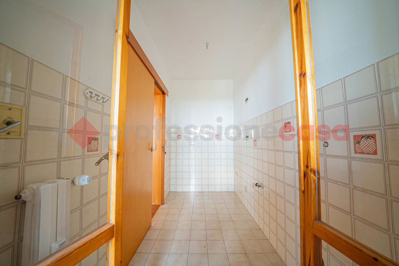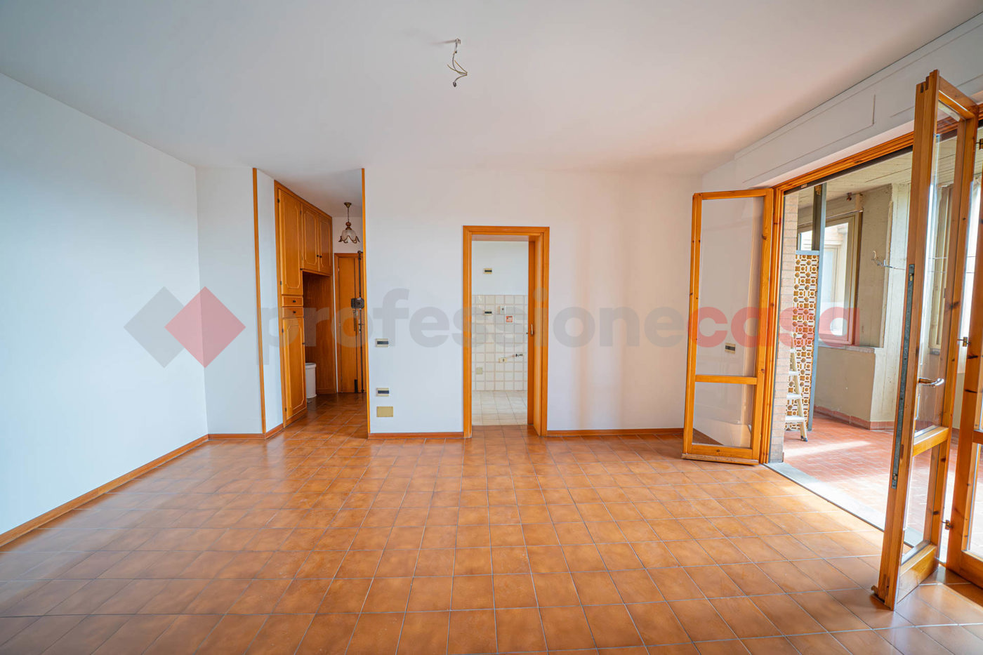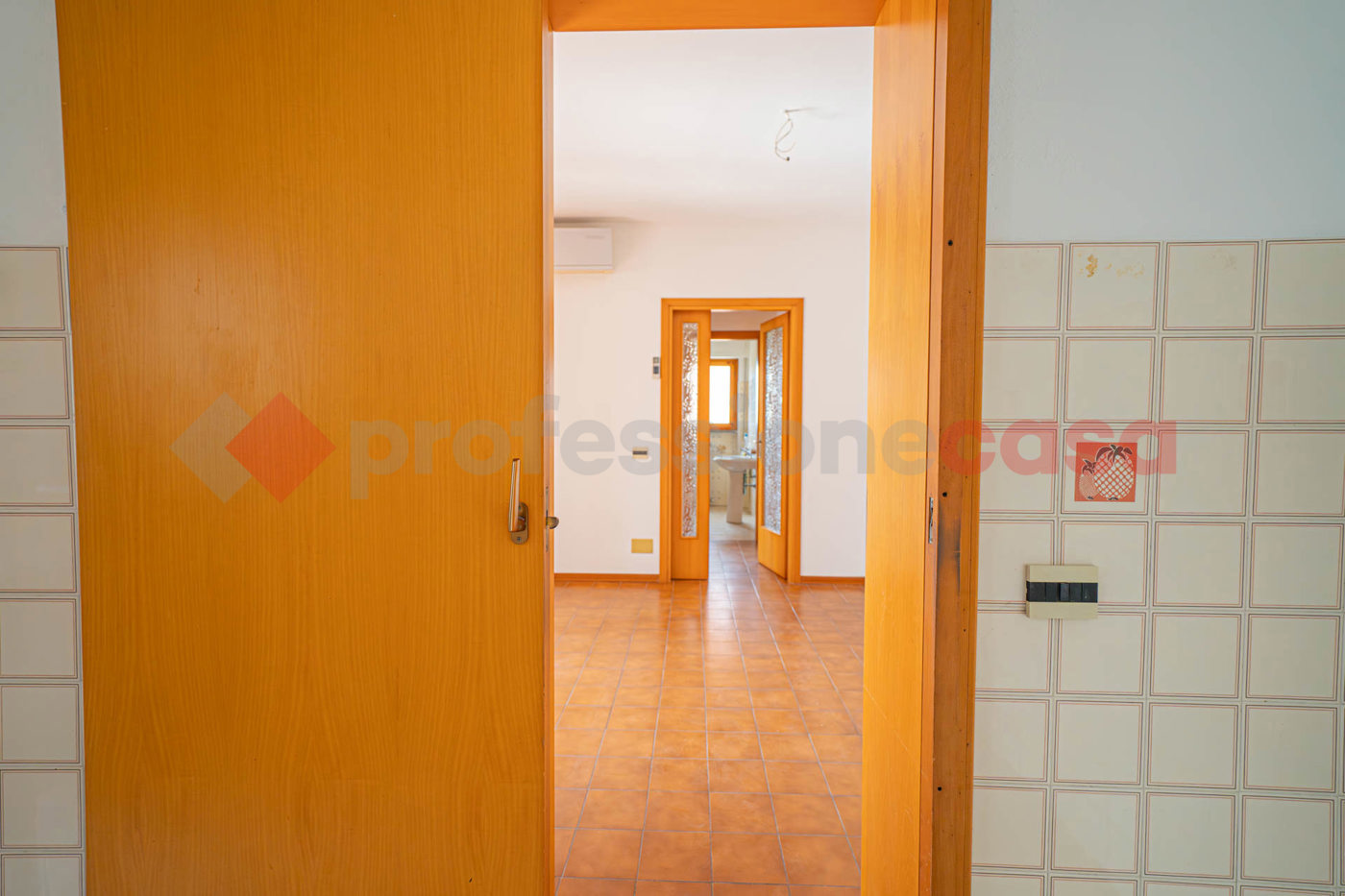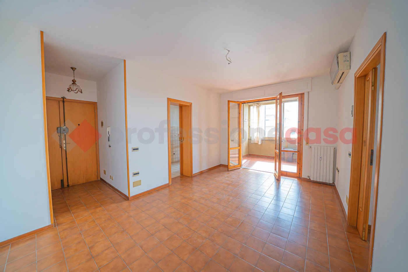 La propriet, sita al quarto piano di pi ampio complesso condominiale anni '80, munito di ascensore, si compone di zona giorno dotata di ingresso, ampia sala, cucinotto e veranda abitabile con attacchi dell'acqua e dunque ideale per ricreare un angolo lavanderia; la zona notte invece composta da servizio finestrato con doccia e due camere da letto di cui una matrimoniale e una media.