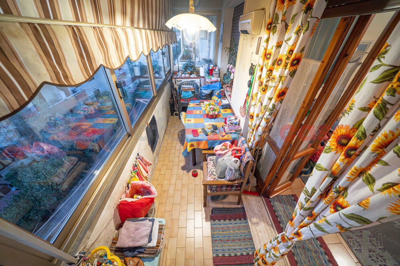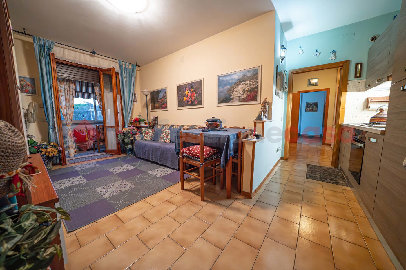 L'immobile si compone entrando di zona giorno con angolo cottura e con accesso al balcone verandato abitabile, proseguendo troviamo il disimpegno notte dal quale si accede alle due camere di cui una singola e l'altra matrimoniale - dalla quale si accede ad un secondo balcone - e un bagno finestrato con doccia.