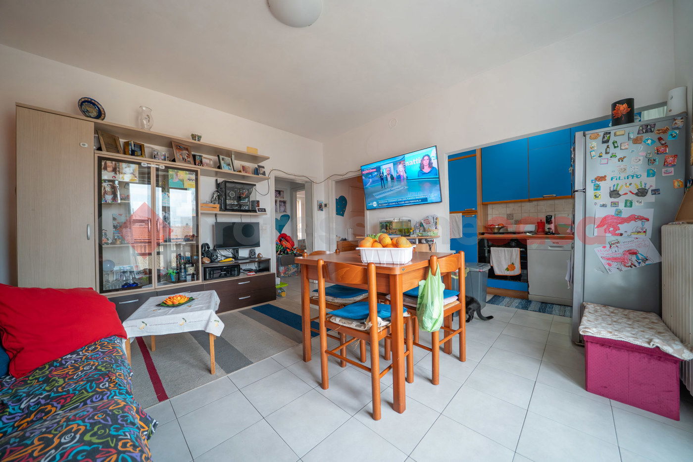 L'appartamento, costruito nel 1971 offre una superficie di 75 mq lordi distribuiti su un unico livello ed ha un ingresso a comune per 2 al secondo piano ed ultimo.