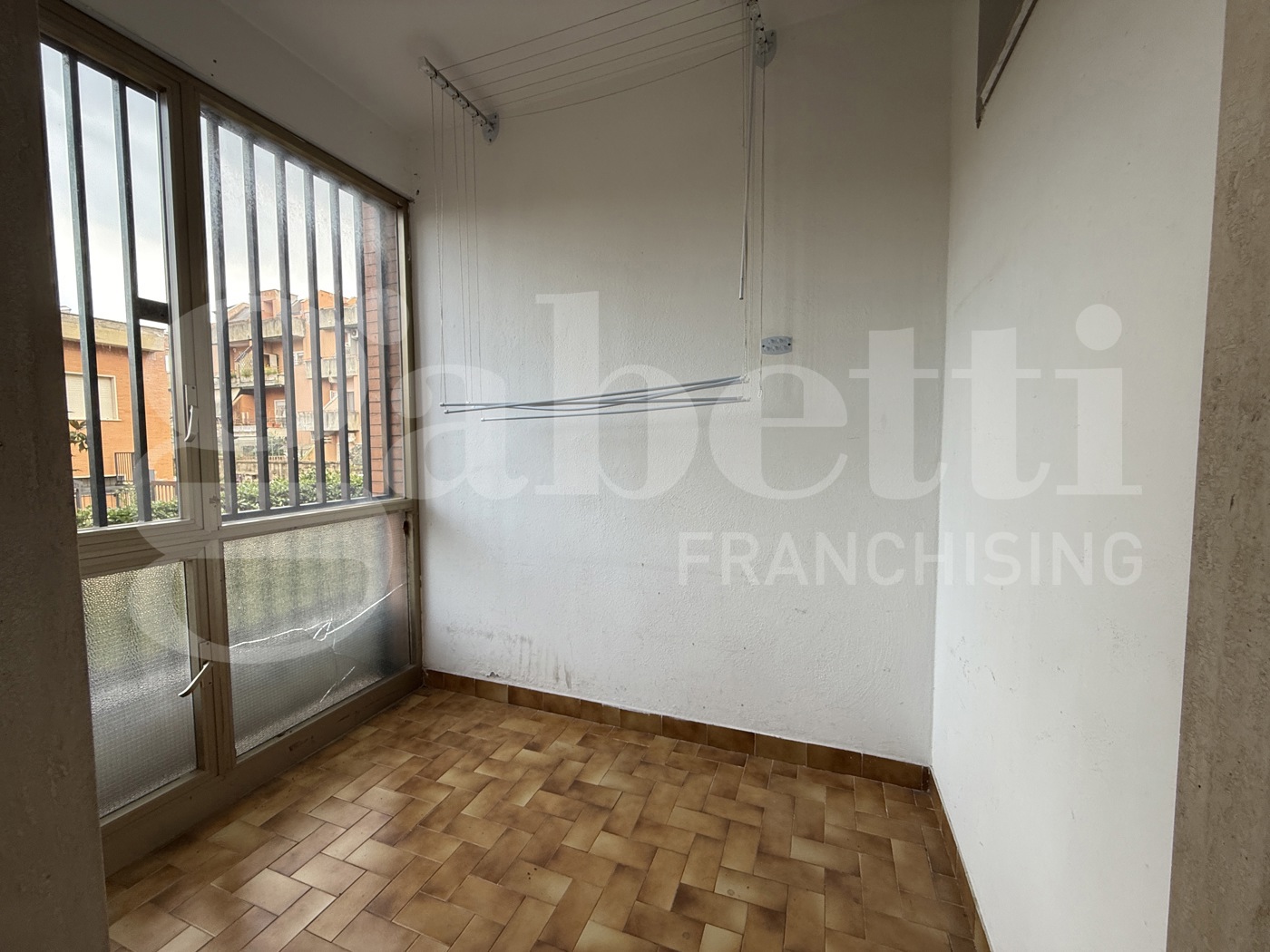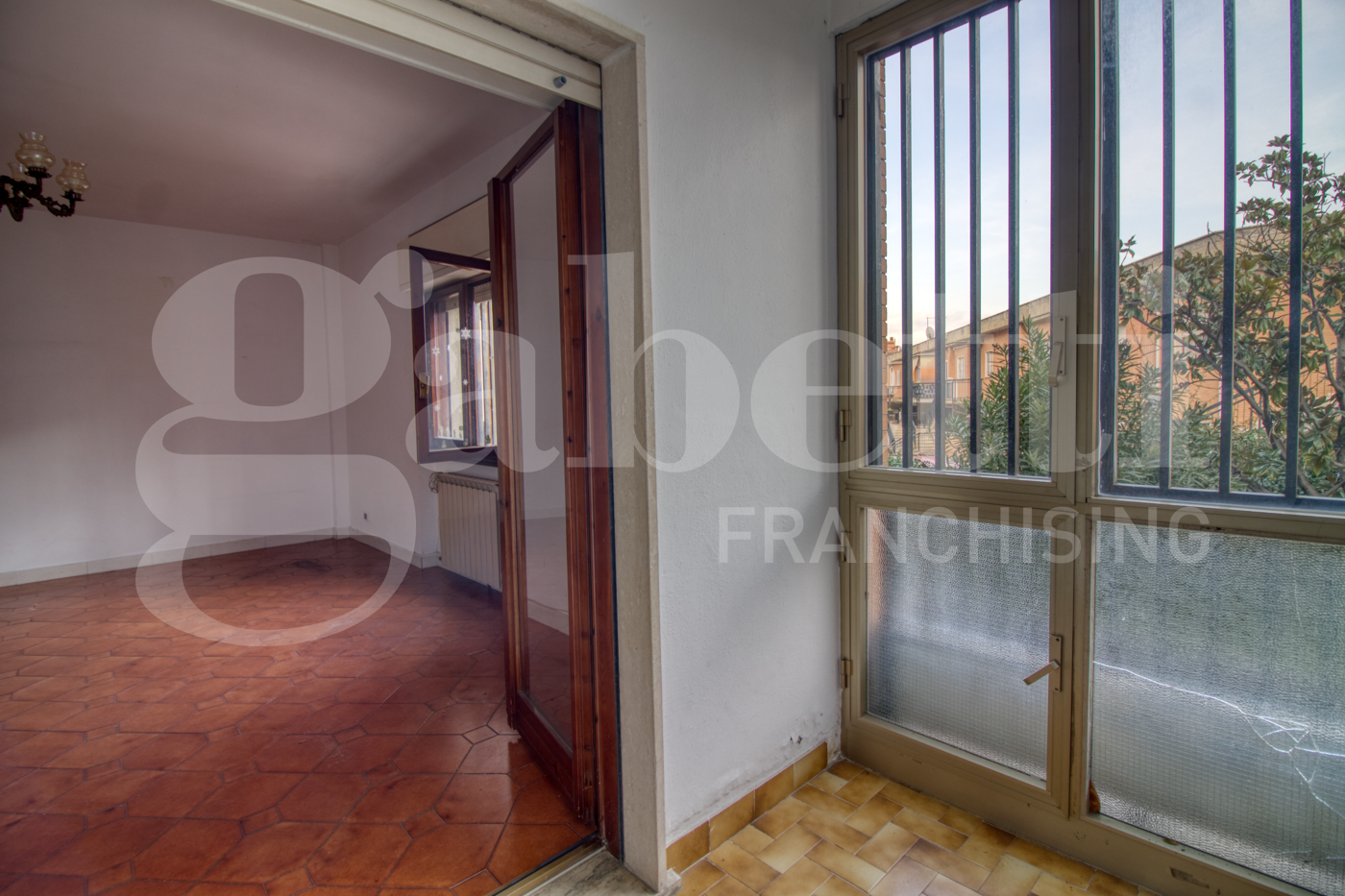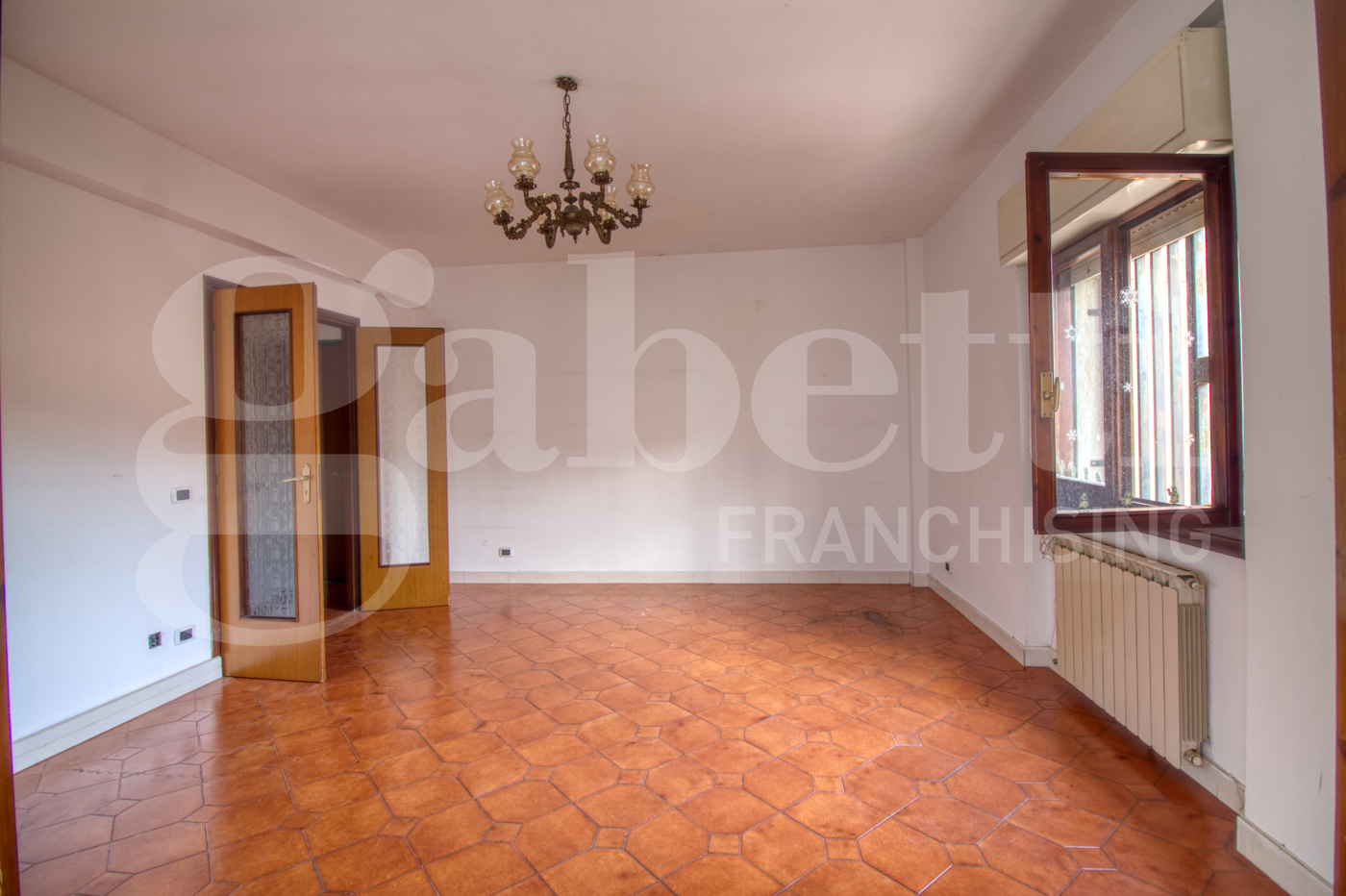 Lingresso dotato di un comodo armadio a muro e conduce a un ampio salone con accesso a un balcone coperto.