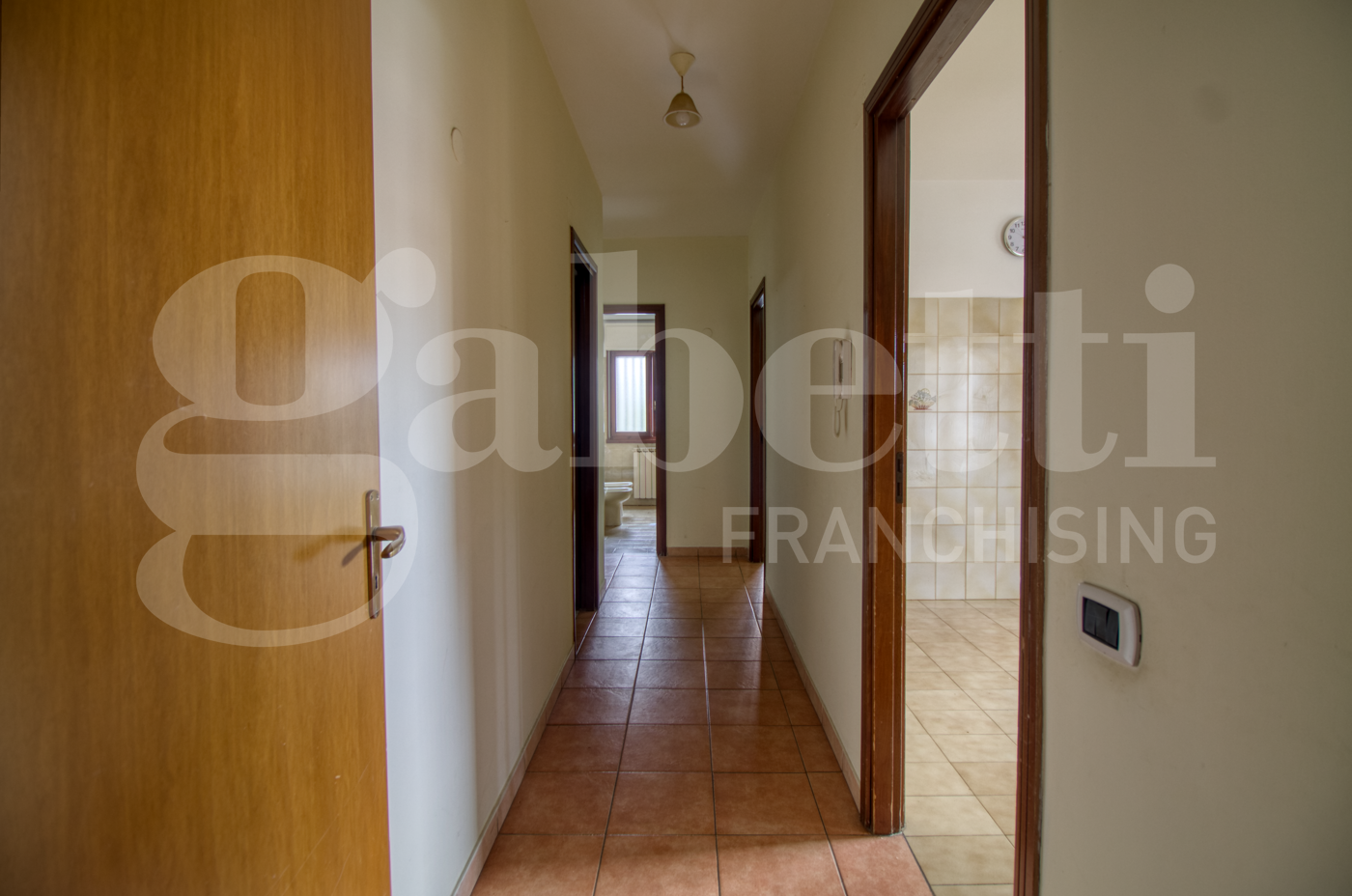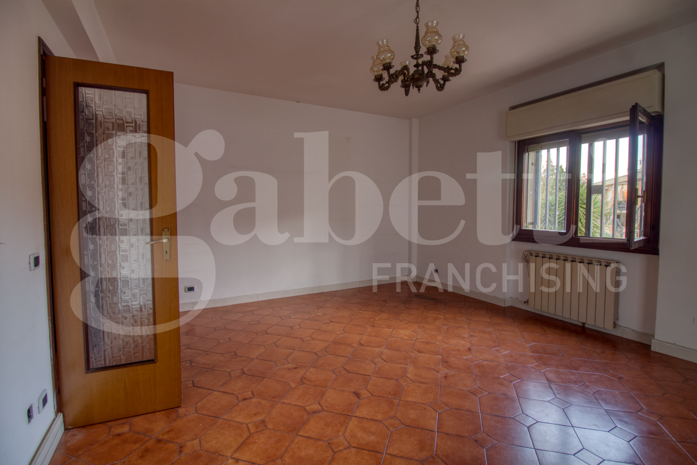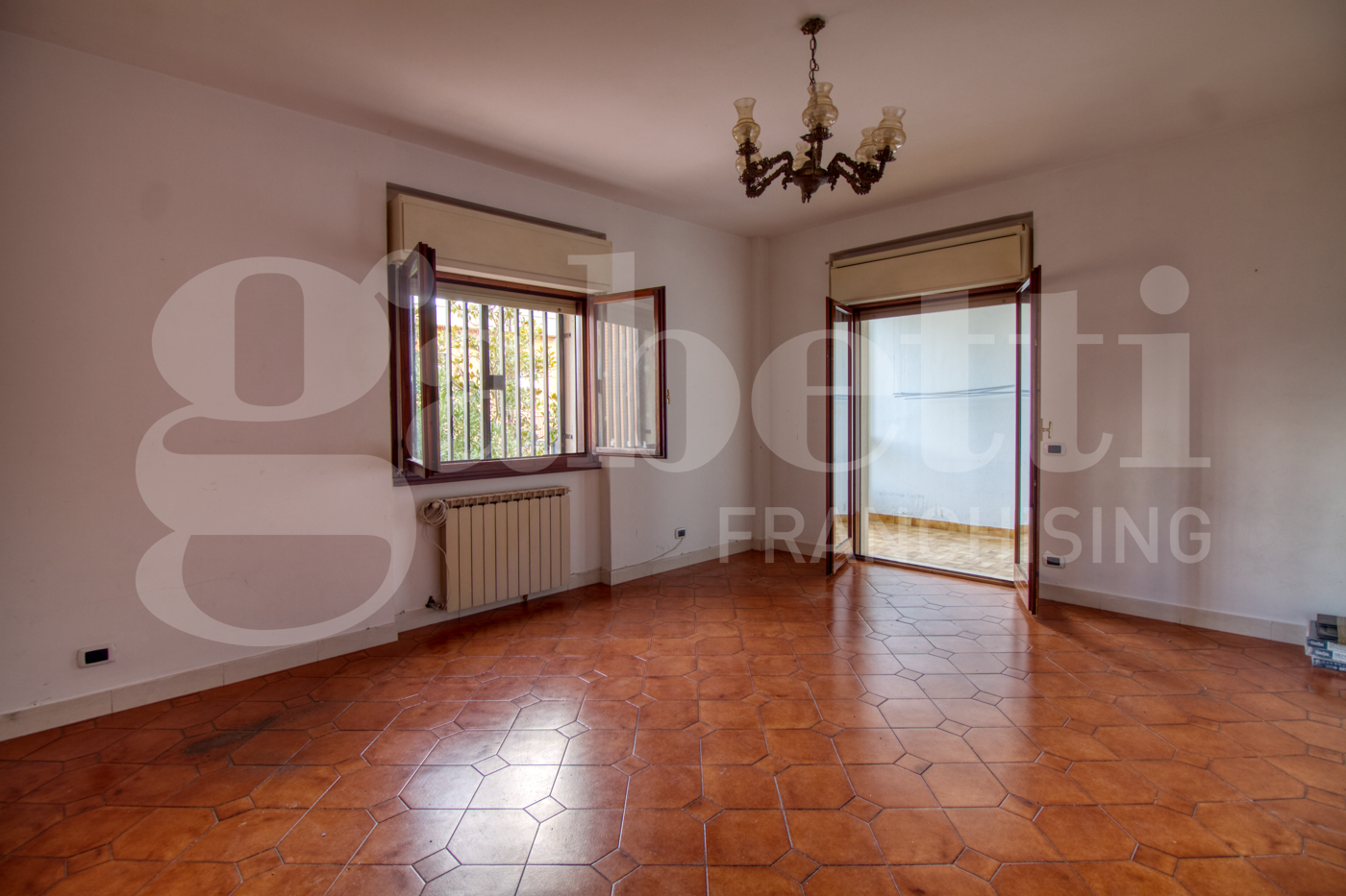 Lingresso dotato di un comodo armadio a muro e conduce a un ampio salone con accesso a un balcone coperto.