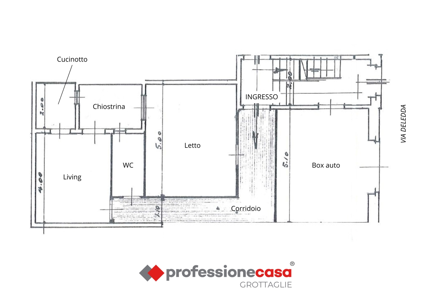 Risulta completamente da ristrutturare, in particolare da sostituire il solaio, del tipo "alla margherita". La propriet si estende su una superficie di circa 65 mq e si compone di due ampi locali: uno destinato alla zona living e l'altro alla zona notte, oltre a un bagno, un cucinotto e un pozzo luce. Completano l'immobile un garage al piano terra di circa 24 mq, una cantinola al piano interrato di circa 20 mq e una terrazza di esclusiva propriet, perfetta per momenti di relax all'aperto.